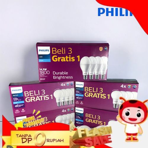 SUPER PHILIPS LAMPU LED MYCARE 6W 8W 10W 12W 14,5W MULTIPACK PAKET ISI 4 BELI 3 GRATIS 1 PUTIH - 6W