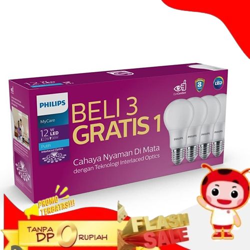 SUPER PHILIPS LED PACK PAKET 3+1 MULTIPACK MYCARE LED BULB 12 WATT 6500K