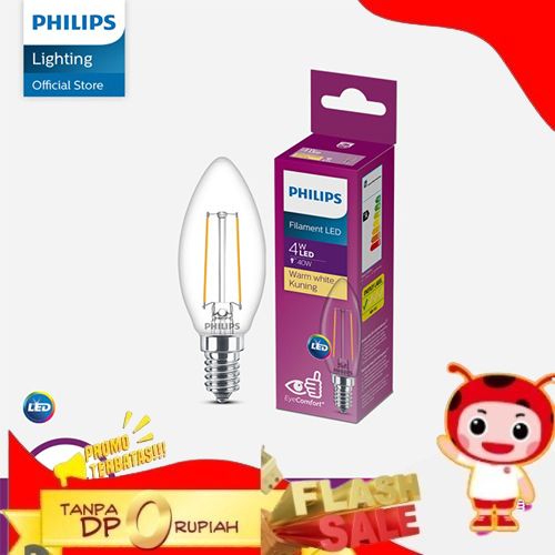 SUPER LAMPU PHILIPS FILAMENT BOHLAM LED 4W B35 E14 KUNING