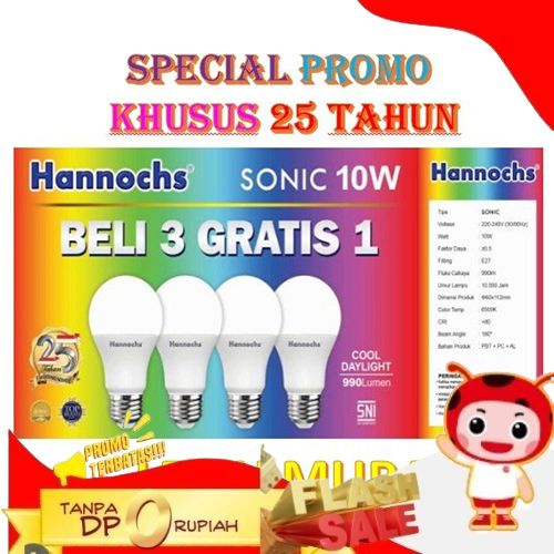 SUPER HANNOCHS LAMPU LED BULB PAKET 6W 10W 13W PAKET 3 GRATIS 1 SNI BERGARAN - 6W