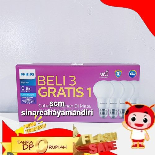 SUPER LAMPU LED PHILIPS PAKET (ISI 4 BH) 6 W, 8 W, 10 W, 12 W, 14.5 W - 6 WATT