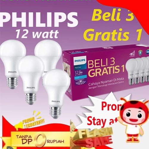 SUPER PAKET ISI 4PCS LAMPU PHILIPS LED 12 WATT PROMO MULTIPACK MYCARE BULB 12 WATT BELI 3 GRATIS 1