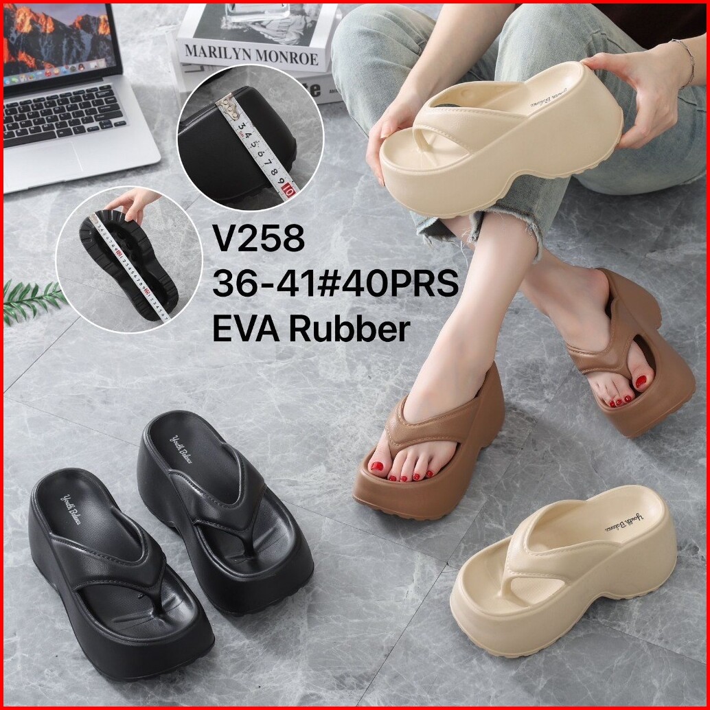 Wedges Jelly Platform Wanita 8cm Wedges Heels Jepit Balance V258