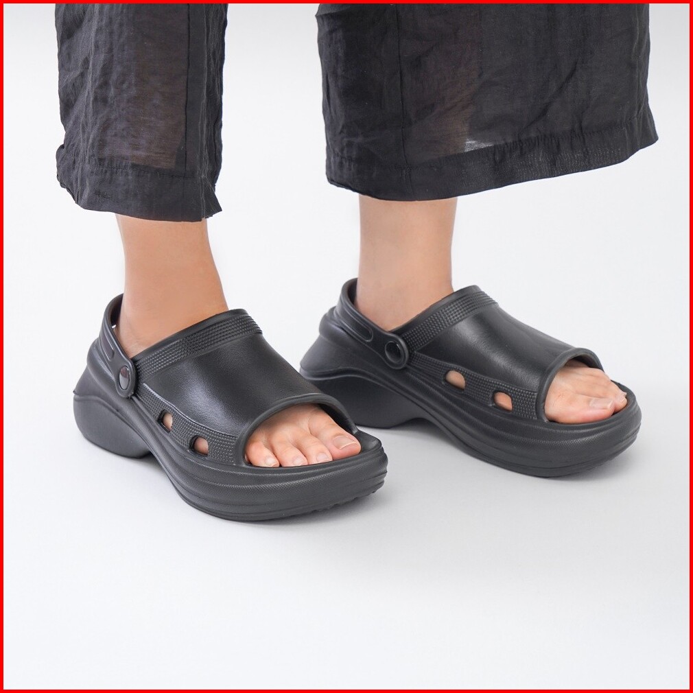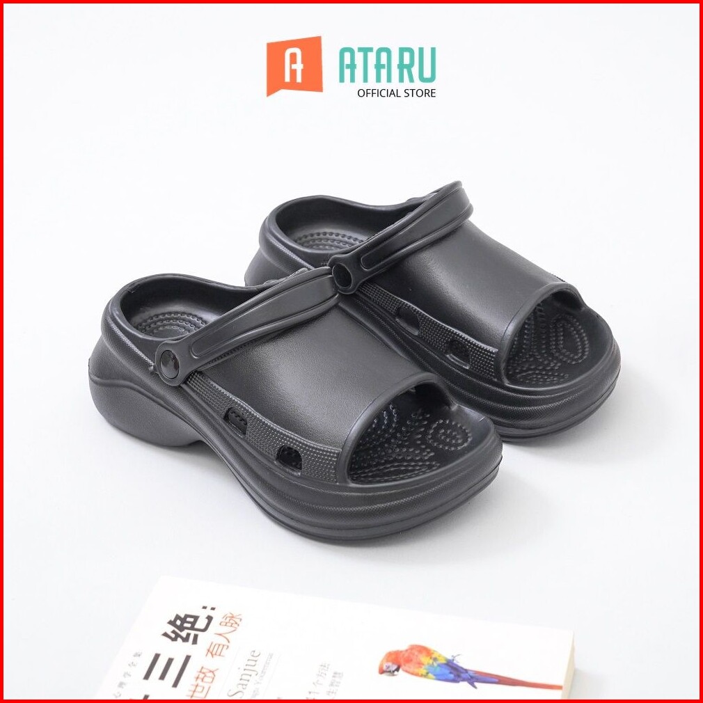 Ataru Ukuran 38-39 Sandal Wanita Clogs Wedges Sling Back - Hitam Sendal Cewek Alas Kaki Slide Wanita Women Fashion