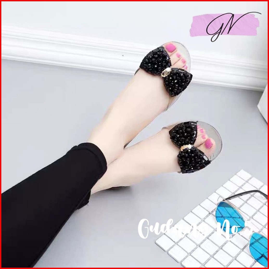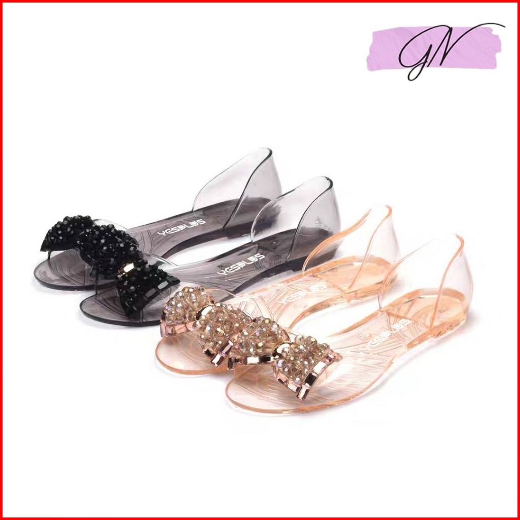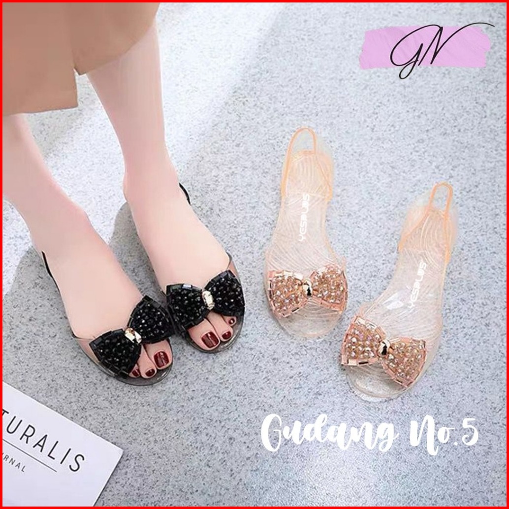 Gn-008 Flatshoes Jelly Wanita Import Slop Flat Model Pita Diamond Fashion Model Terbaru