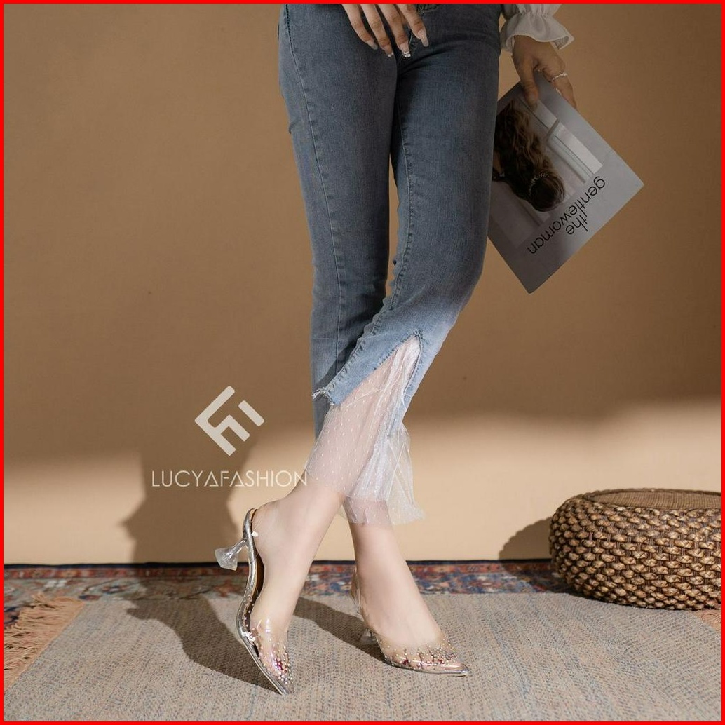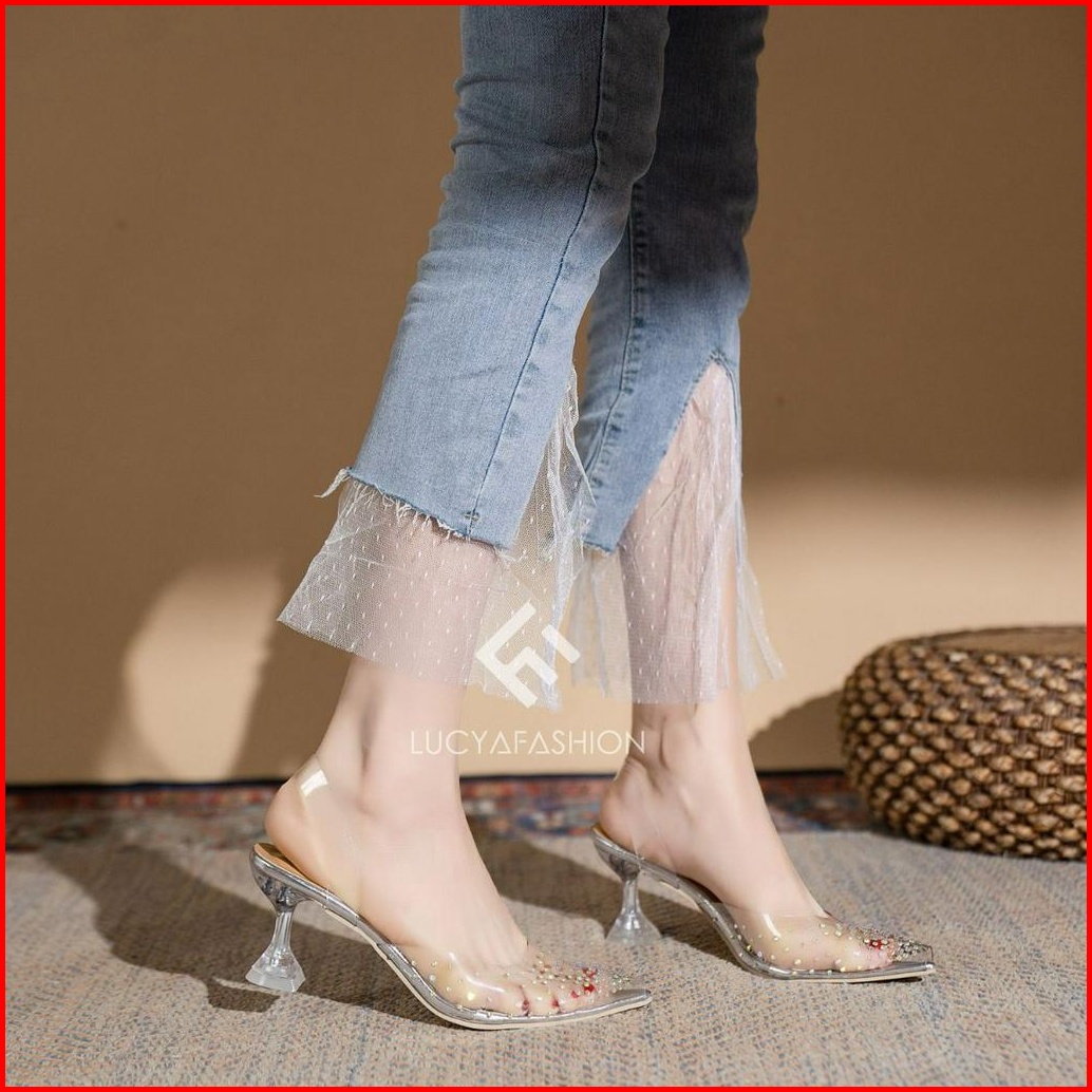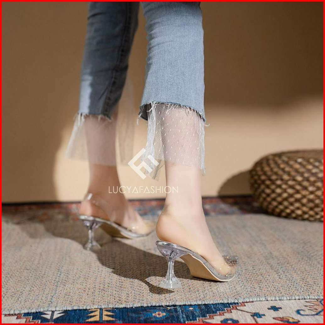 Agi0206 Heels Wanita Elegan Transparan Kaca Sepatu Hak Tinggi Kekinian Party Shoes Terbaru
