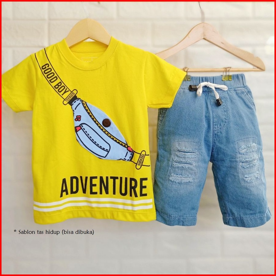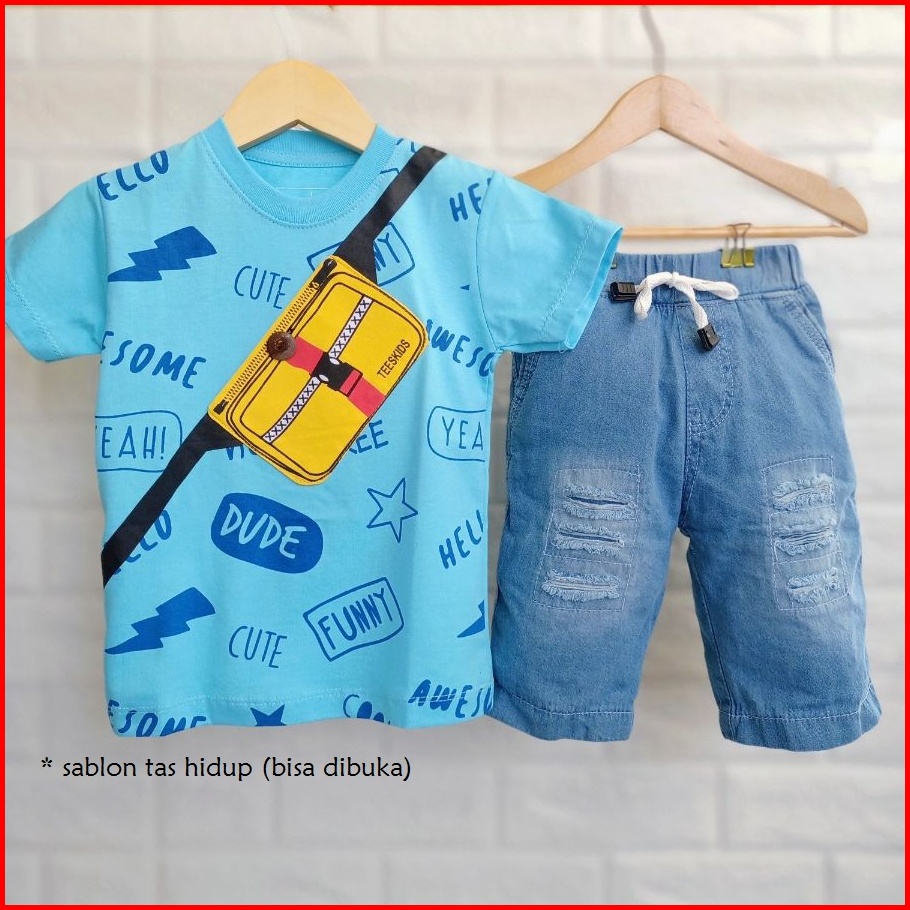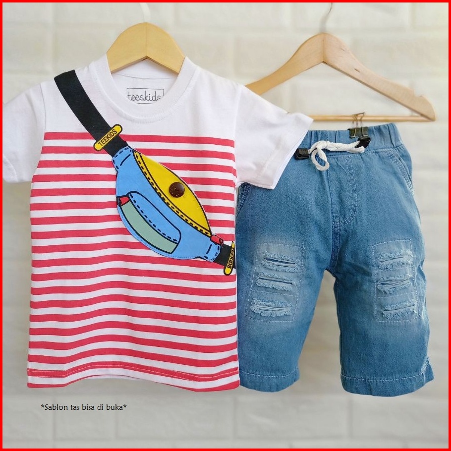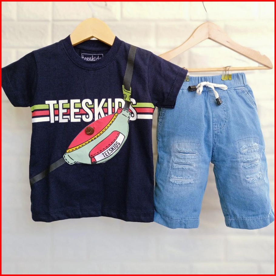 Setelan Anak Laki Laki Bags Celana Pendek Denim Setelan Anak Cowok 1 Tahun - 9 Tahun