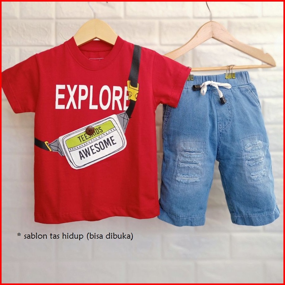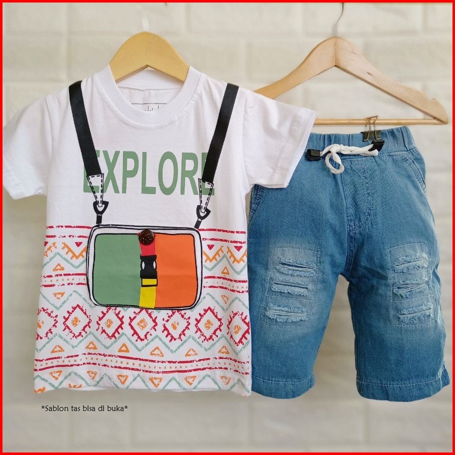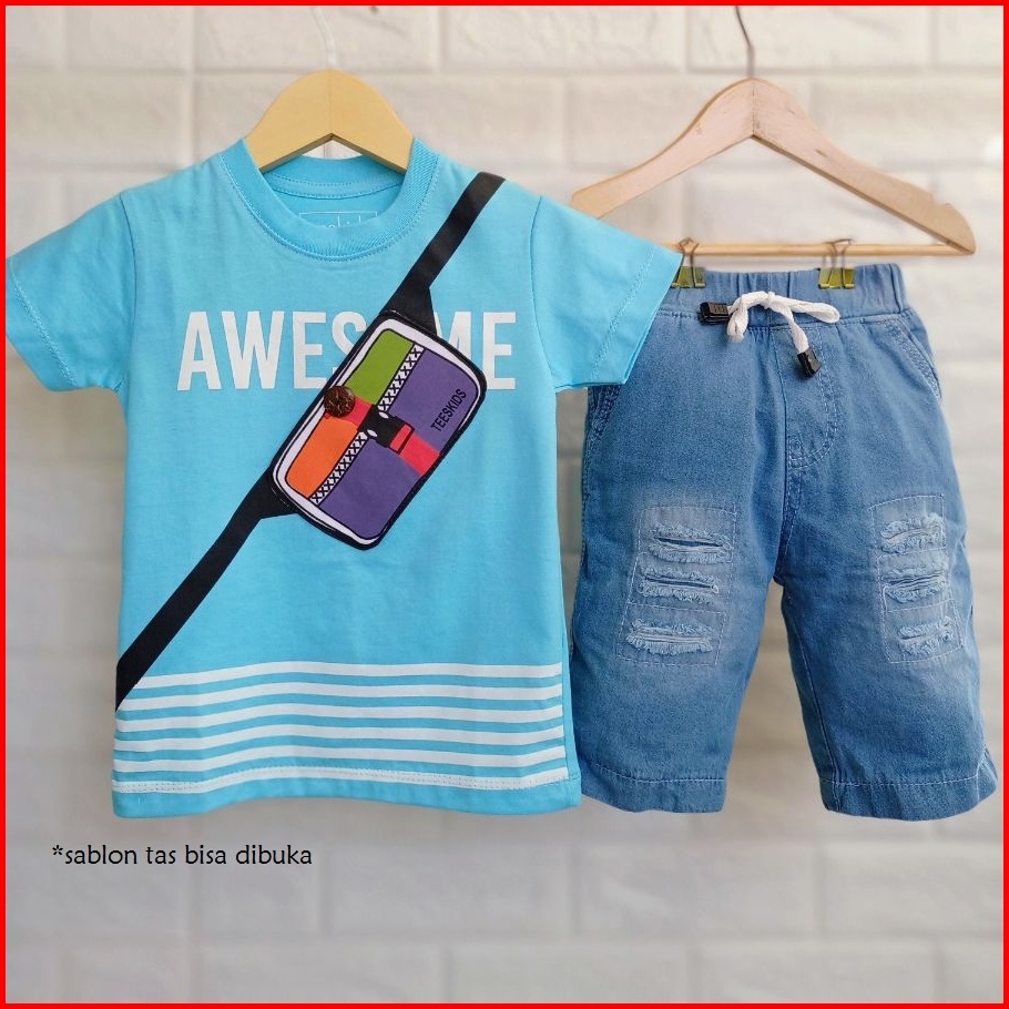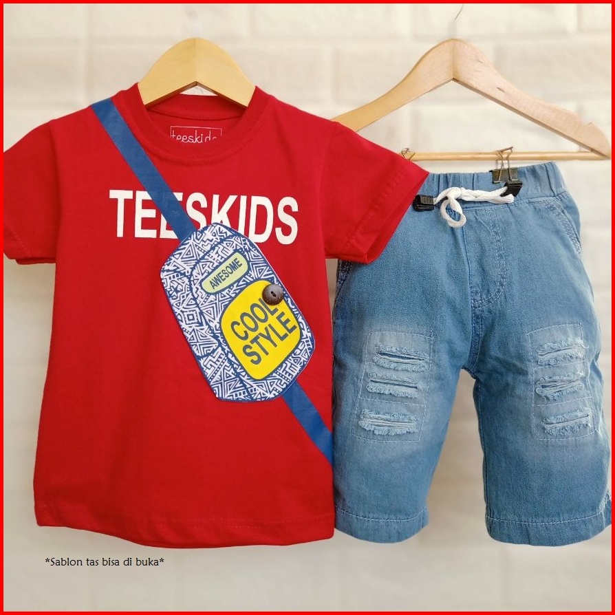 Setelan Anak Laki Laki Bags Celana Pendek Denim Setelan Anak Cowok 1 Tahun - 9 Tahun