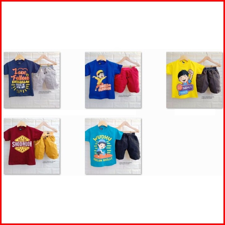 Baju Anak Cowo Muslim Lc Celana Pendek 1-9 Tahun Setelan Laki Laki Kids