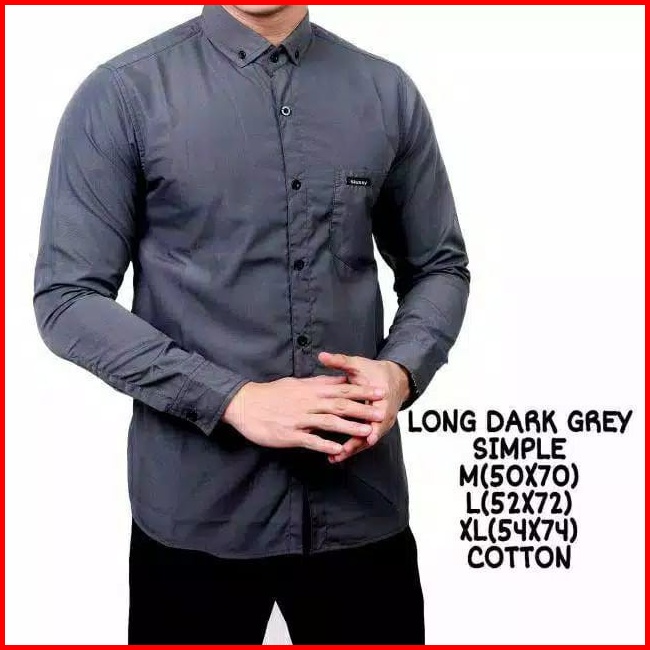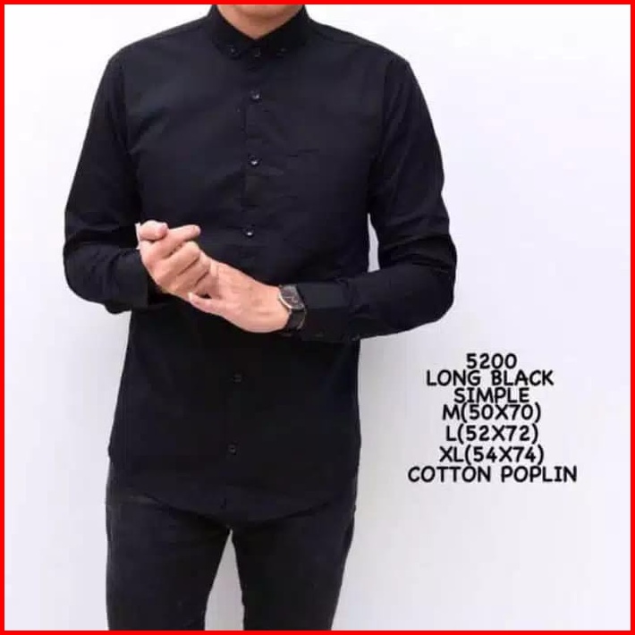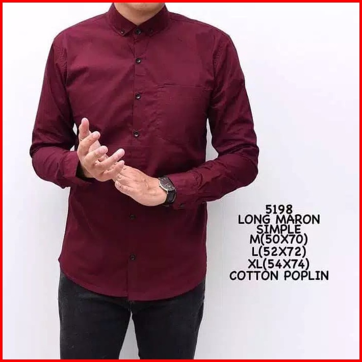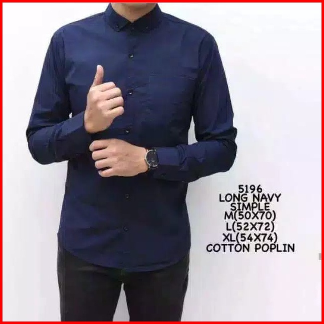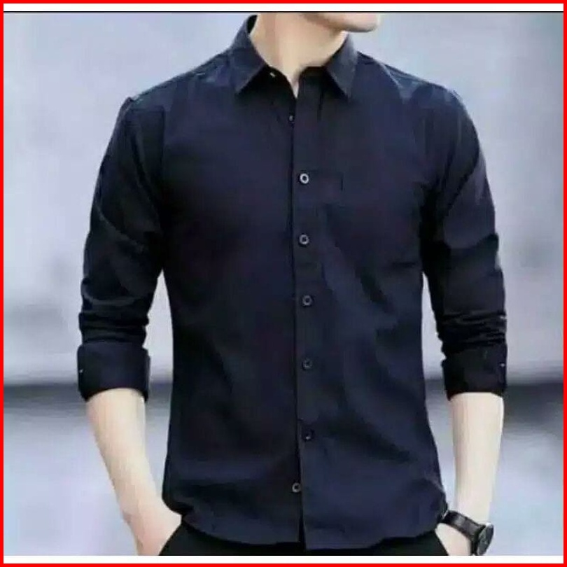 Kemeja Cowok Polos Pria Lengan Panjang Slimfit Hem Pria Kantor Hitam Navy Putih Maron Army