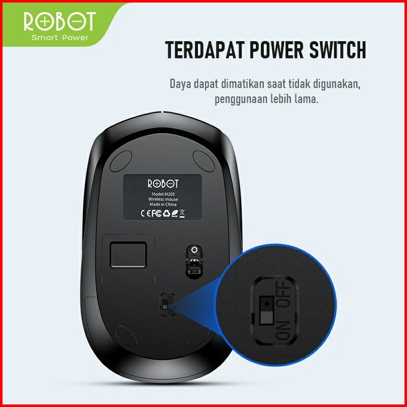 Mouse Wireless Robot M205 Usb Receiver Optical 2.4ghz Tombol On Off Original