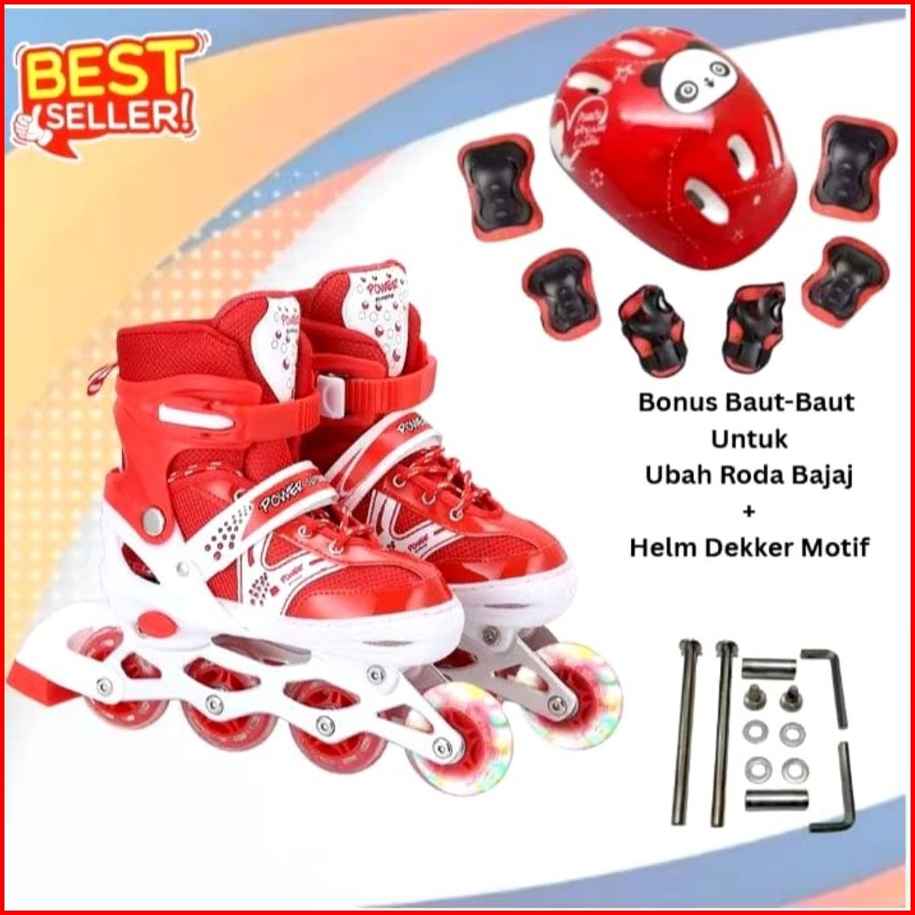 Sepatu Roda 2in1 Fullset Deker Helm Inline Skate Anak Roda Bajaj