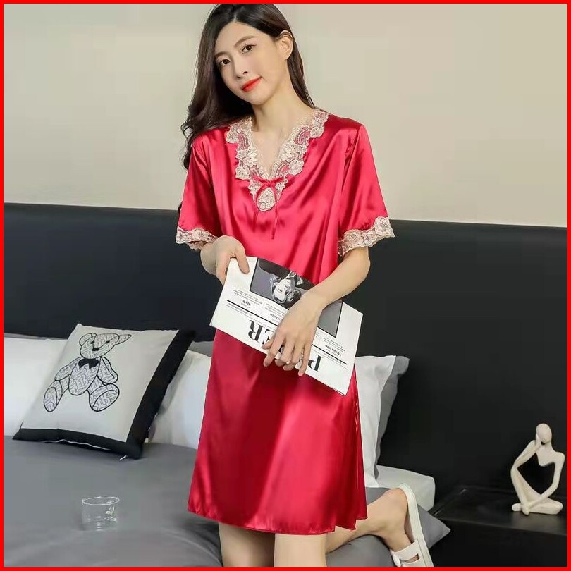 Piyama Sutra Es Renda Leher V Leher Wanita Lengan Pendek Populer