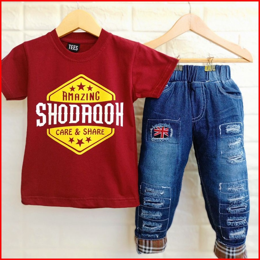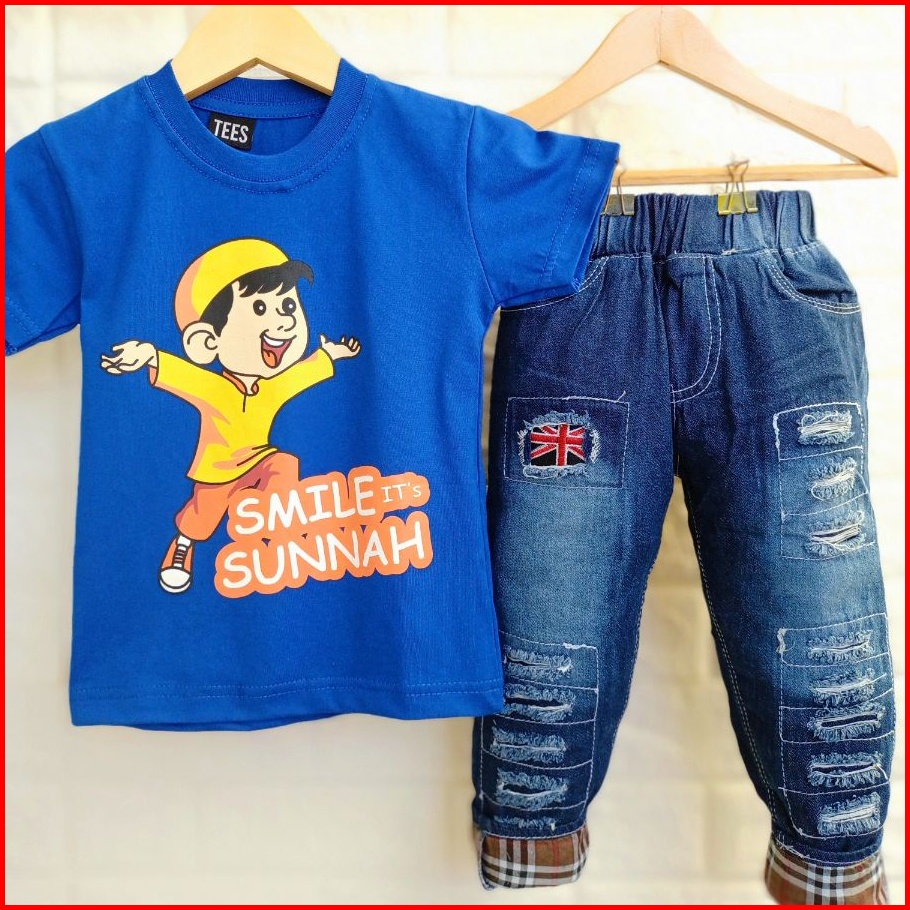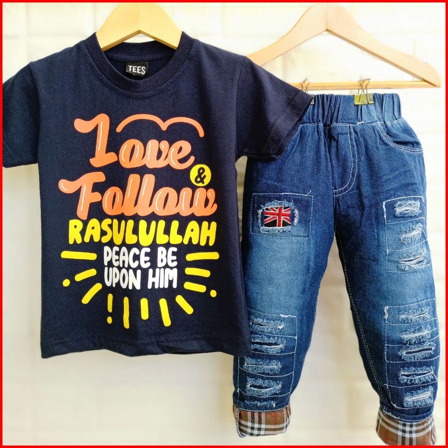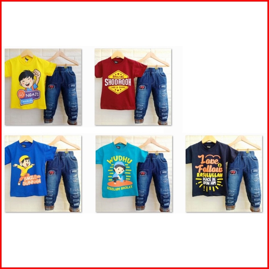 Baju Anak Laki Laki Muslim Celana Panjang Jeans Blstk Usia 1 -9tahun Setelan Anak Cowok Muslim