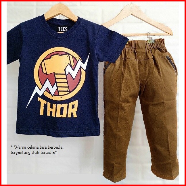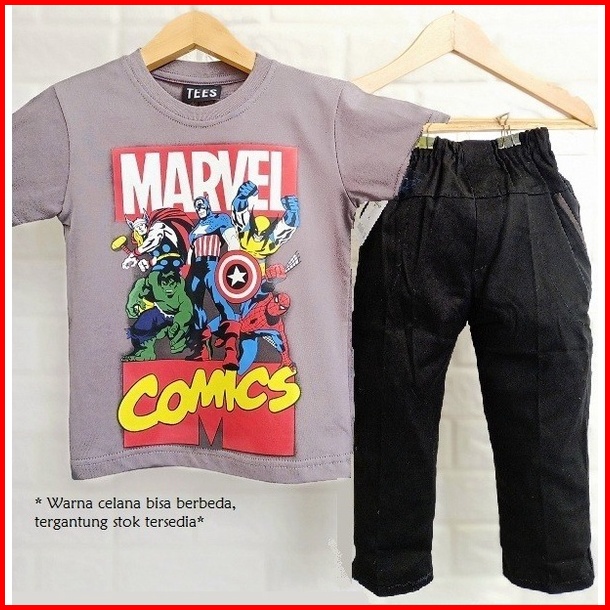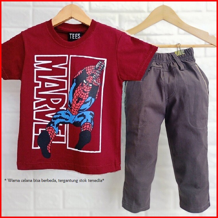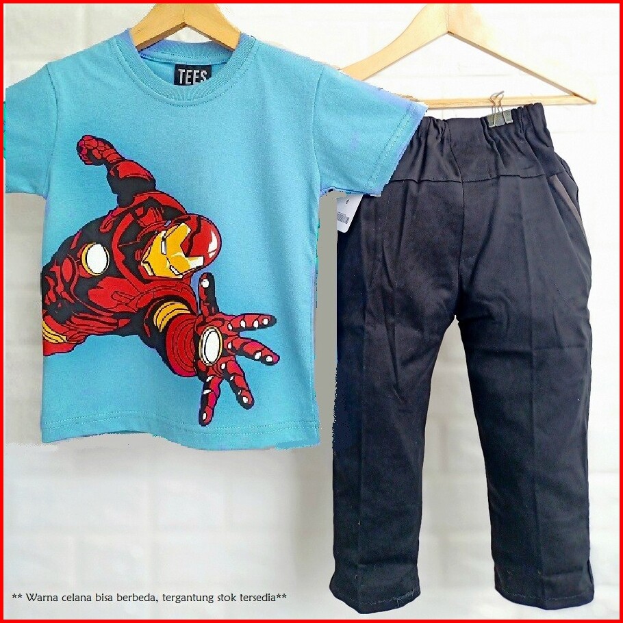 Setelan Anak Laki Superhero Celana Panjang Katun Capt America Thor Avenger Spiderman 1-9 Tahun Kpjg