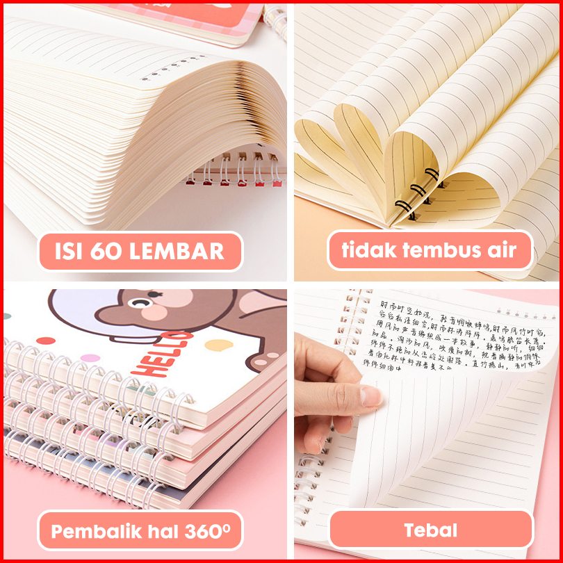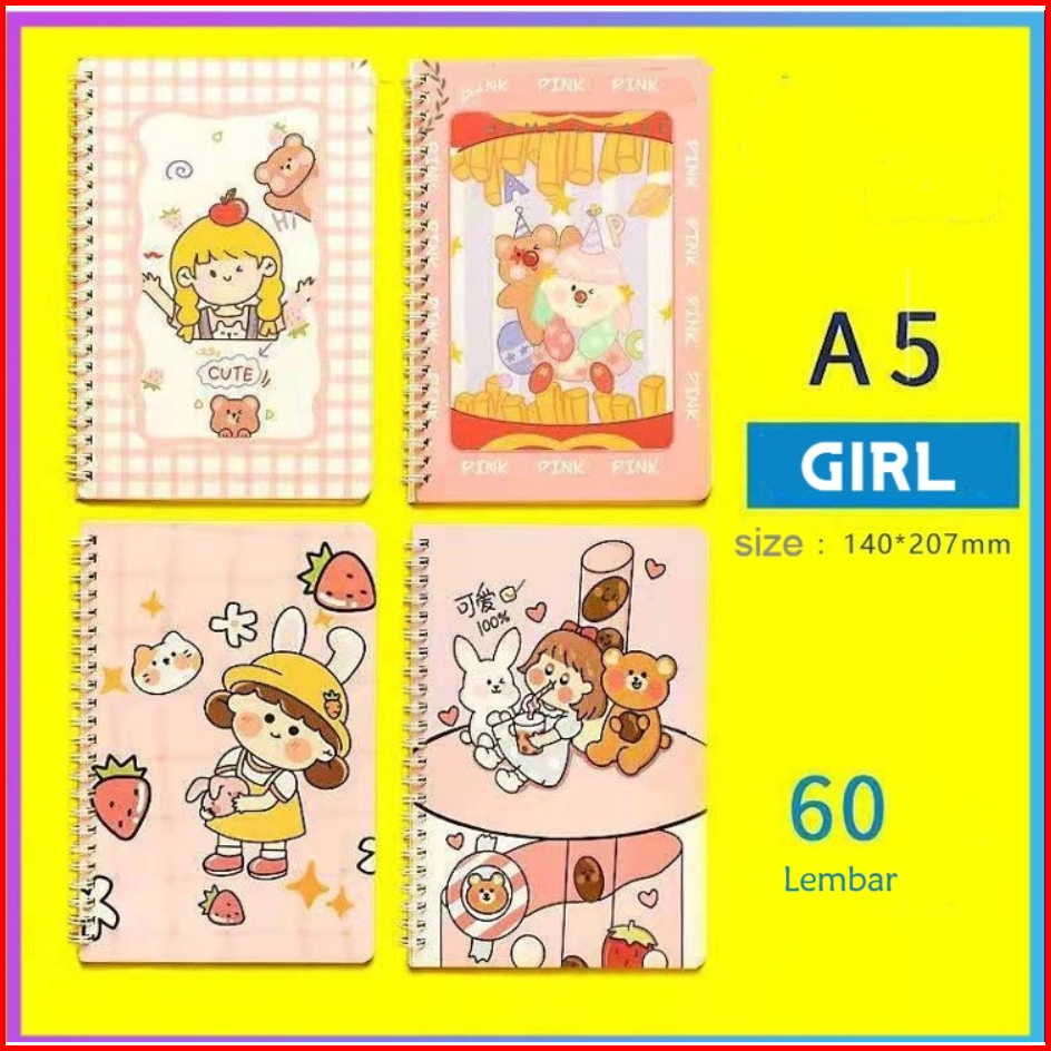Buku Tulis Sekolah Karakter Lucu Anak Ring A5 Korea Notebook 60 Halaman Notes Buku Tulis Journal Buku Diari Buku Catatan