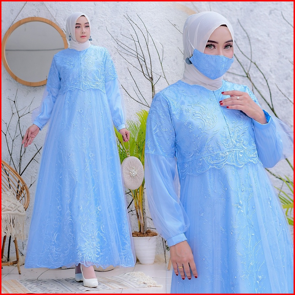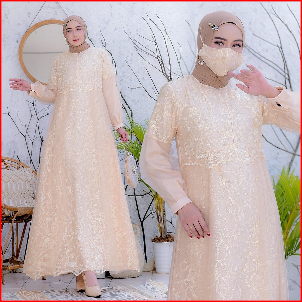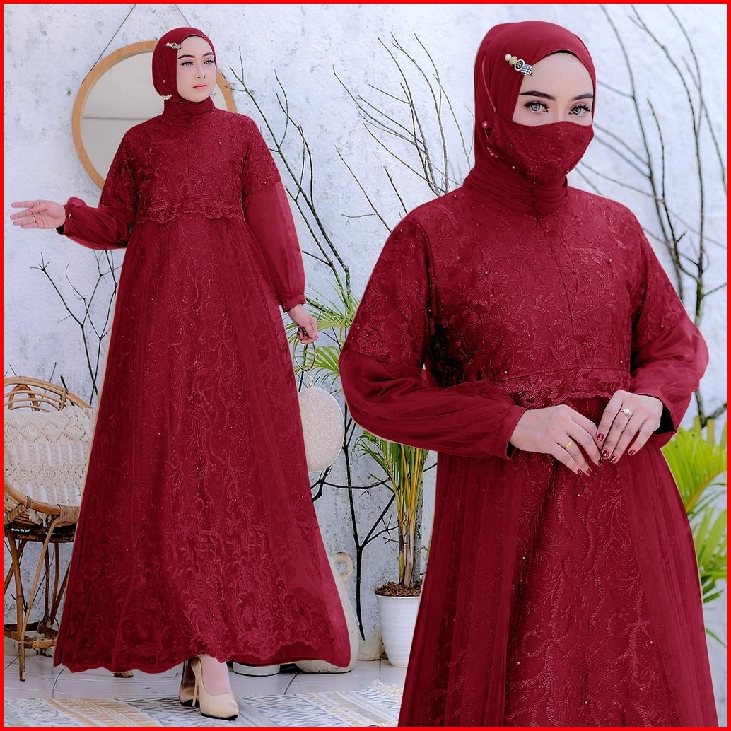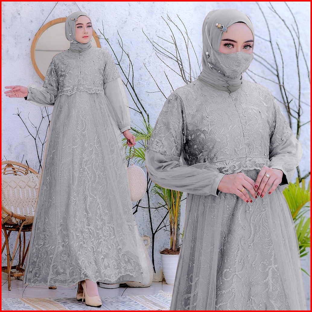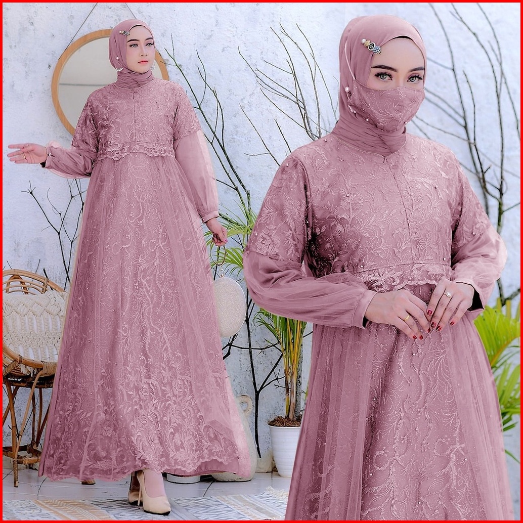 New Free Masker Brukat Selvia Brukat Tile Mutiara Size S-m L Xl Xxl Gamis Pesta Maxi Dress Kondangan Brokat Muslimah