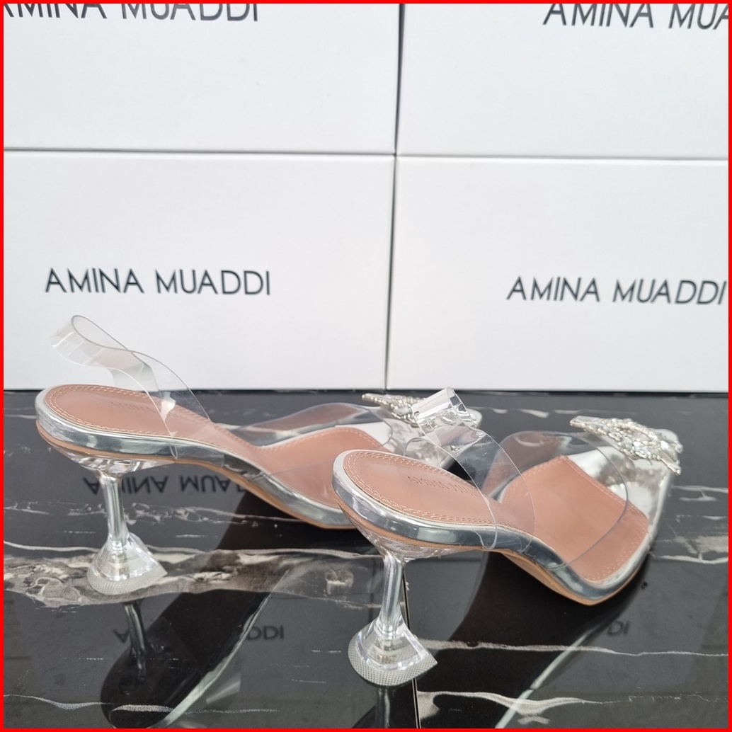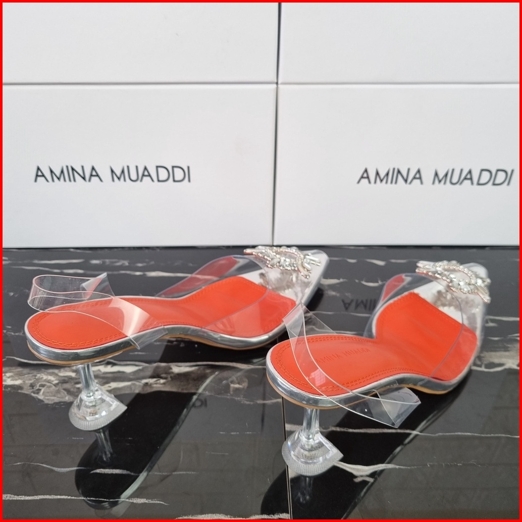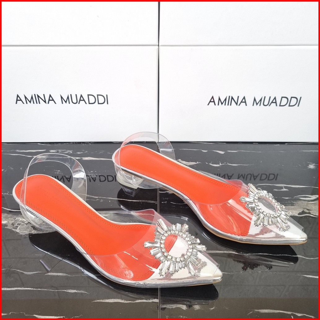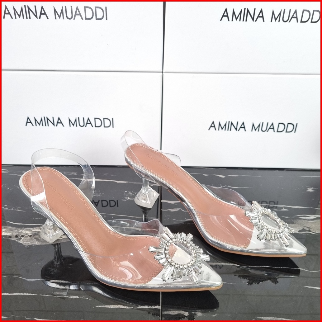 Sepatu Amina Muaddi Begum Crystal Glass Sling Heels Transparent Pvs - Sam001