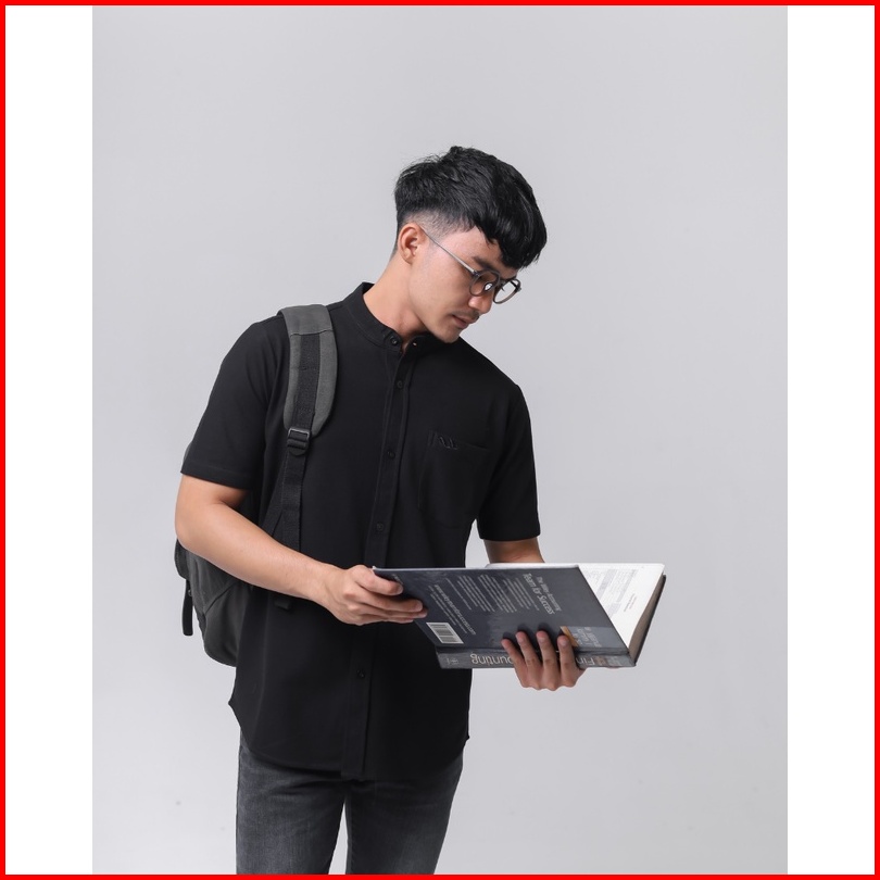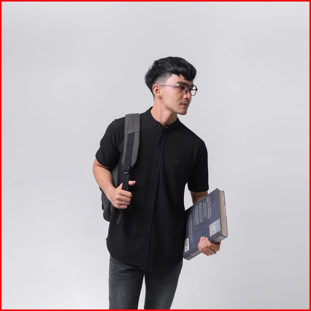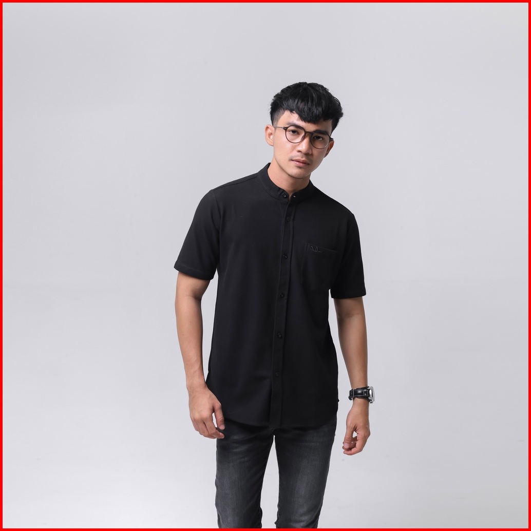 Ineat Kent Black Short Sleeve Slimfit Pique Shirt