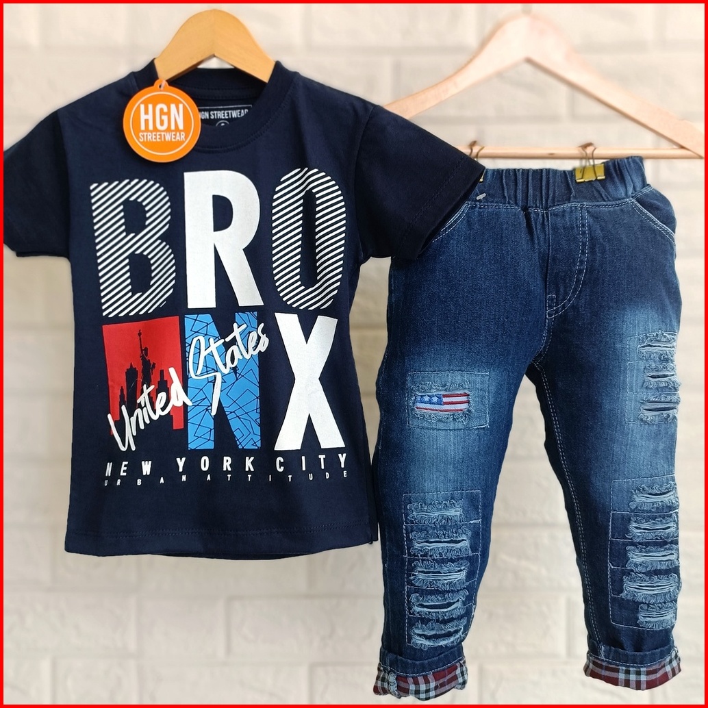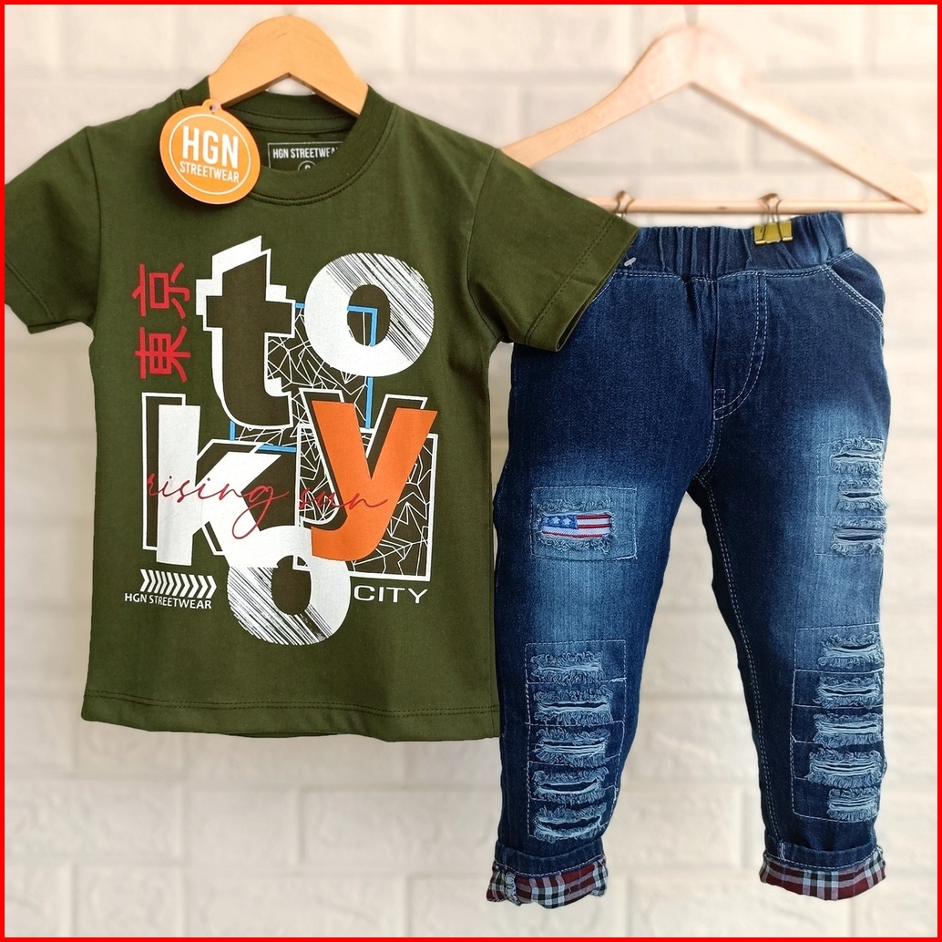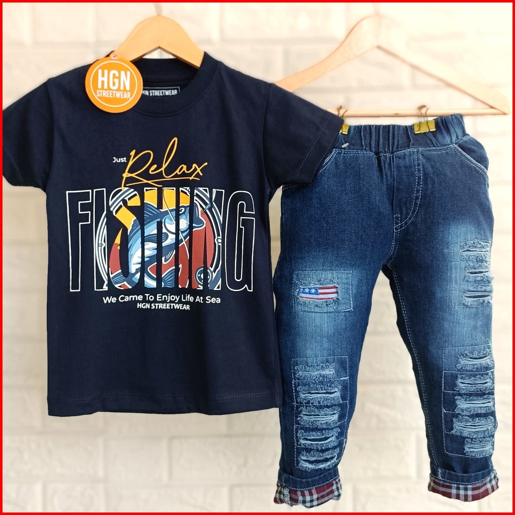 Setelan Anak Laki-laki Pakaian Anak Cowok Baju Cowok Kaos Laki Celana Panjang Celana Jeans Panjang Anak Laki-laki 1 Tahu