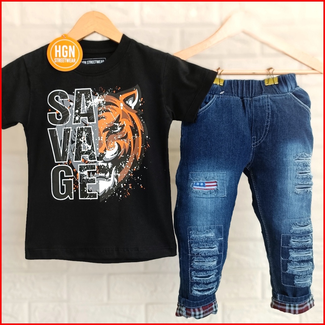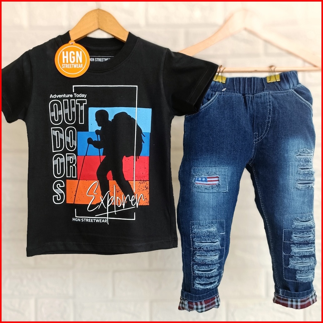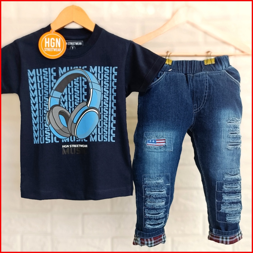 Setelan Anak Laki-laki Pakaian Anak Cowok Baju Cowok Kaos Laki Celana Panjang Celana Jeans Panjang Anak Laki-laki 1 Tahu