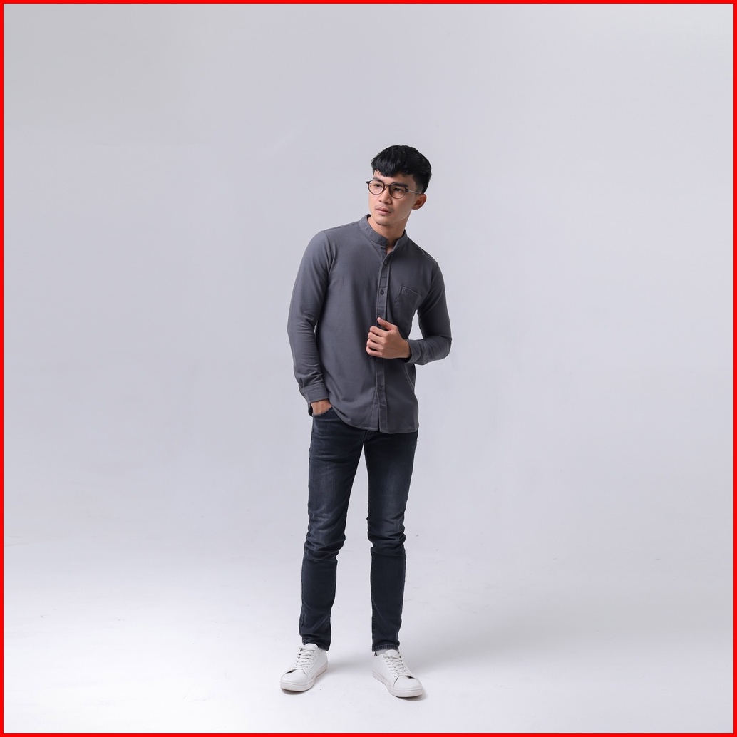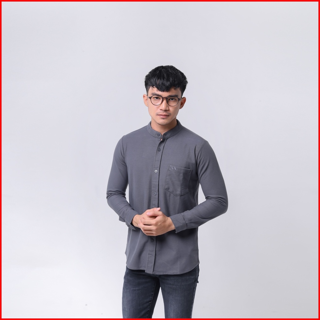 Ineat Kent Grey Long Sleeve Slimfit Pique Shirt