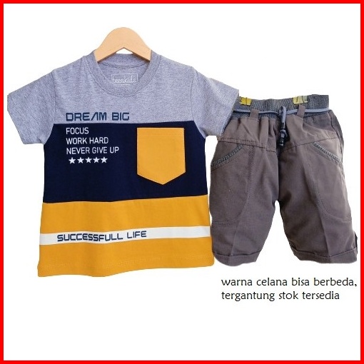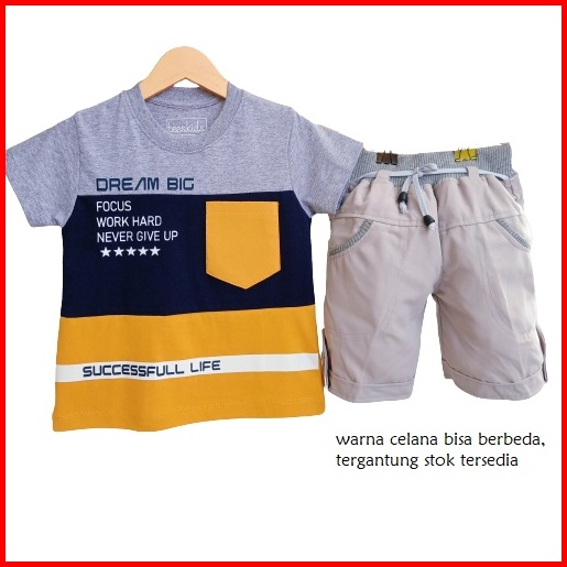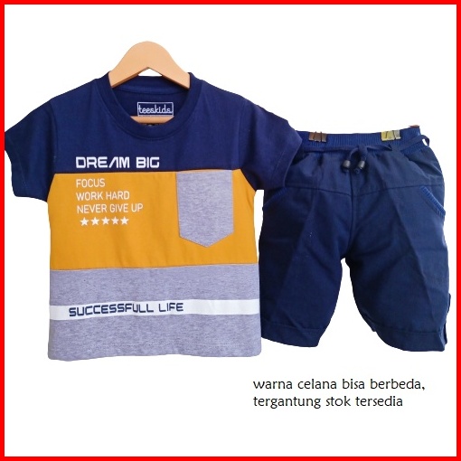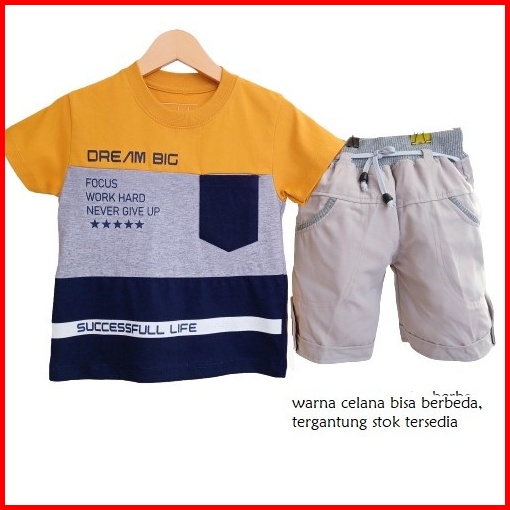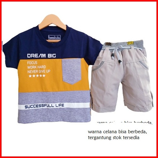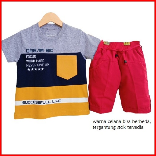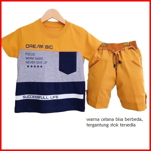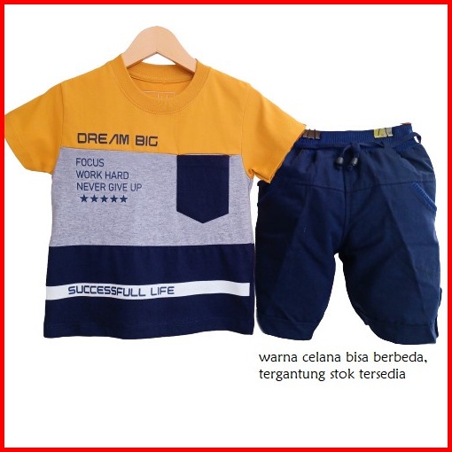 Set Anak Laki-laki Setelan Baju Anak Cowok Kaos Distro Celana Pendek Lc Dream Big 1-9 Tahun