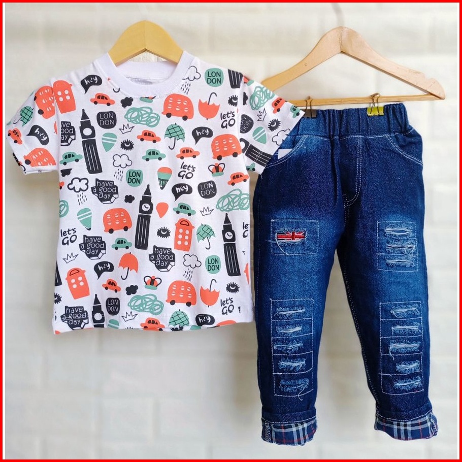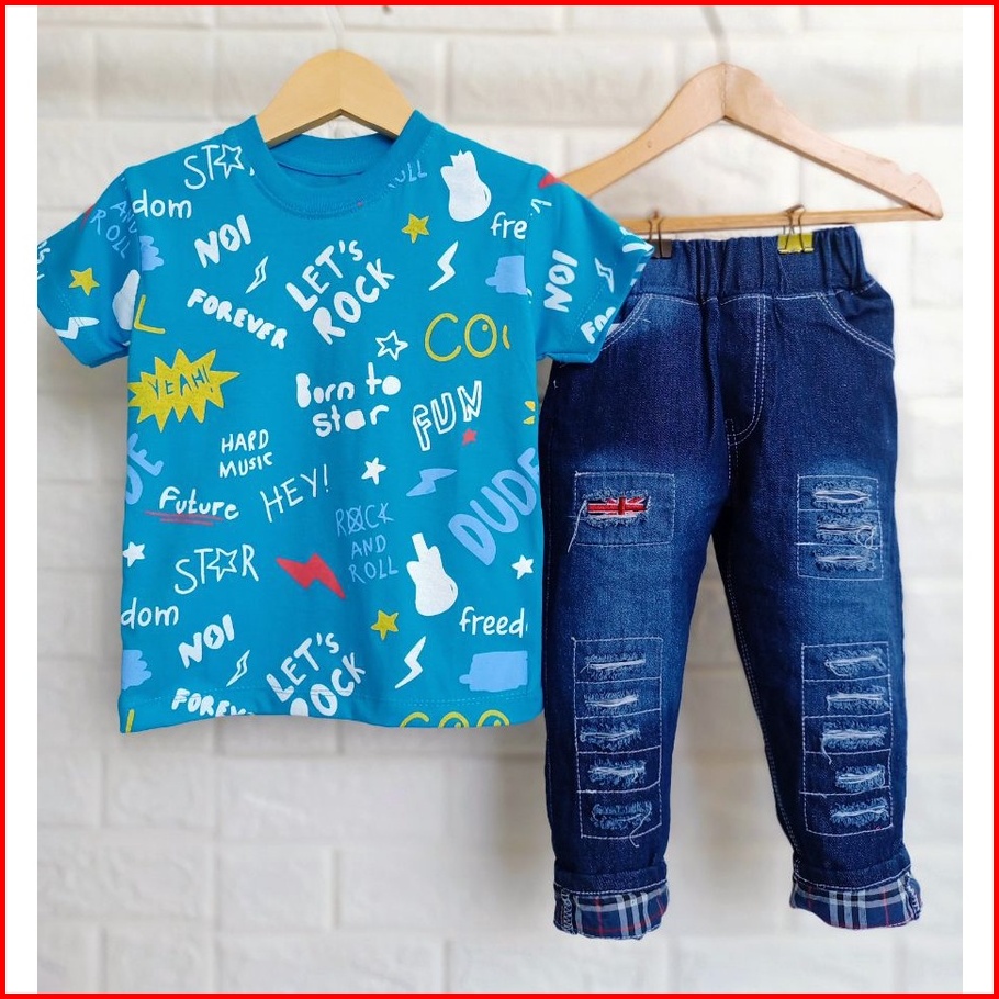 Baju Anak Laki Setelan Anak Cowok Celana Panjang Anak Jeans Anak Printing Boy 1-9 Tahun Blstk