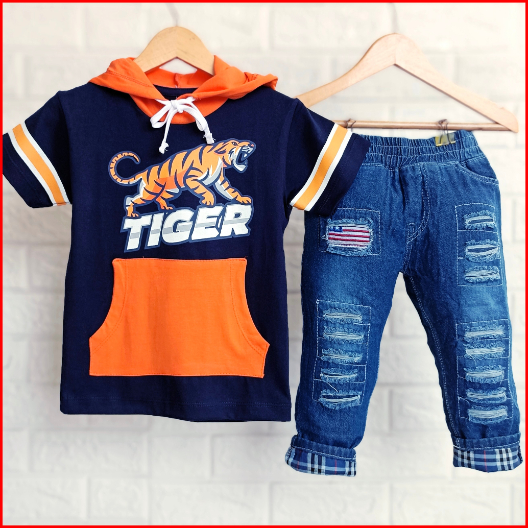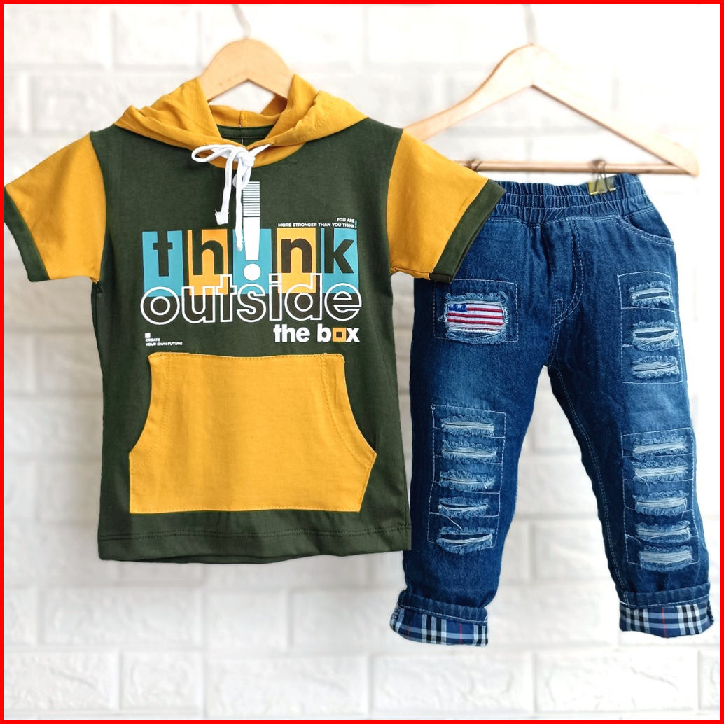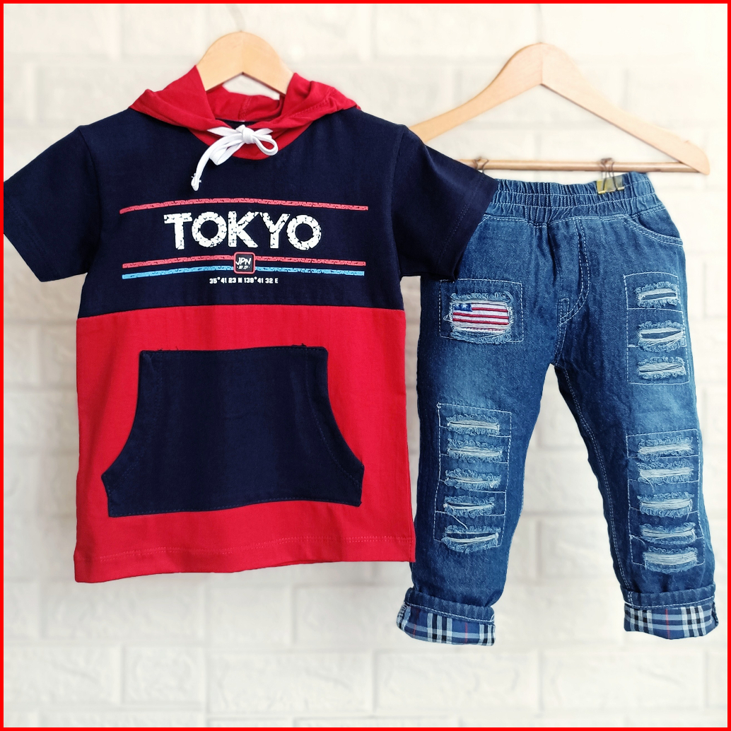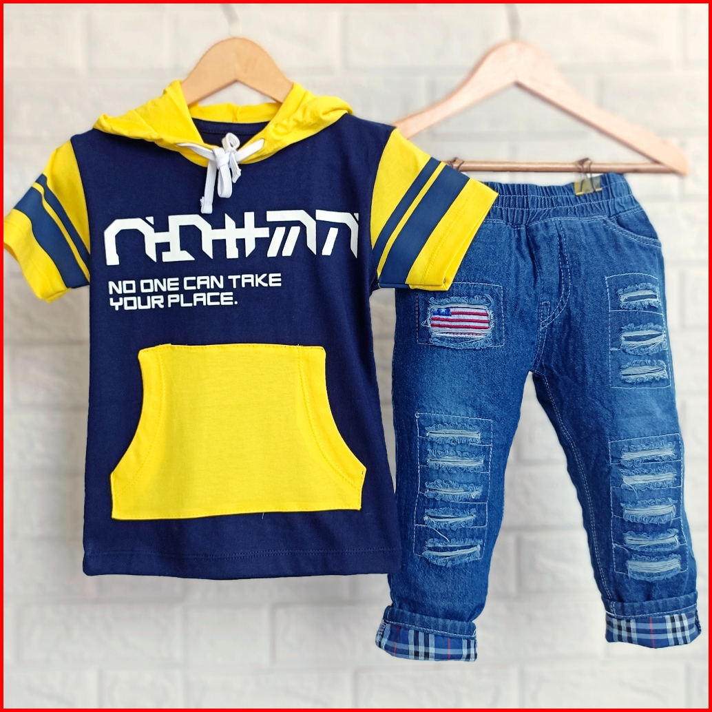 Setelan Kupluk Anak Cowok Baju Hoodie Laki Laki Blstk Celana Panjang Jeans 1 - 9 Tahun Kupluk Anak Laki Bahan Katun Comb