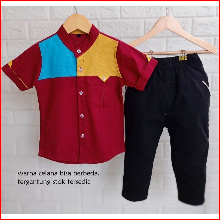 Kemeja Anak Cowok Katun Baju Anak Laki Laki 1-9 Tahun Setelan Celana Panjang Katun