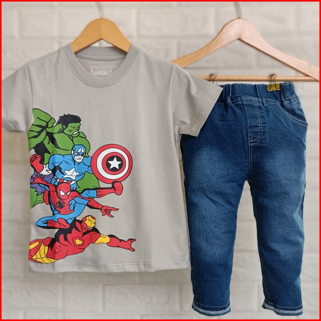 Pakaian Anak Cowok 1 Tahun Celana Jeans Stretch Anak 3 Tahun Setelan Anak Laki Laki Superhero Jeans Stretch 1 Tahun - 9