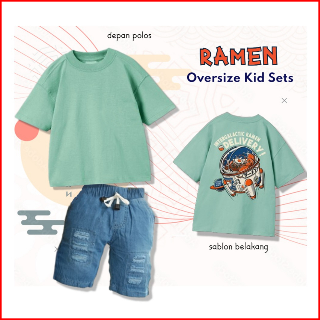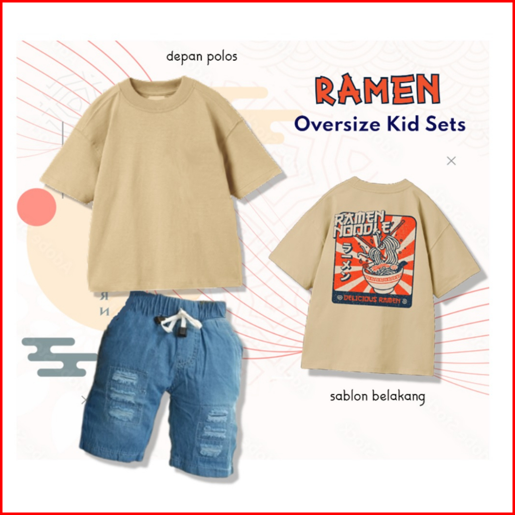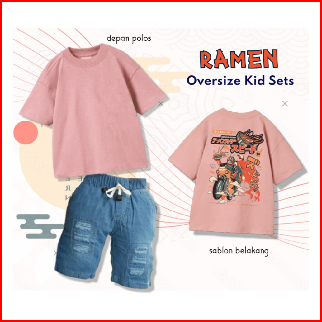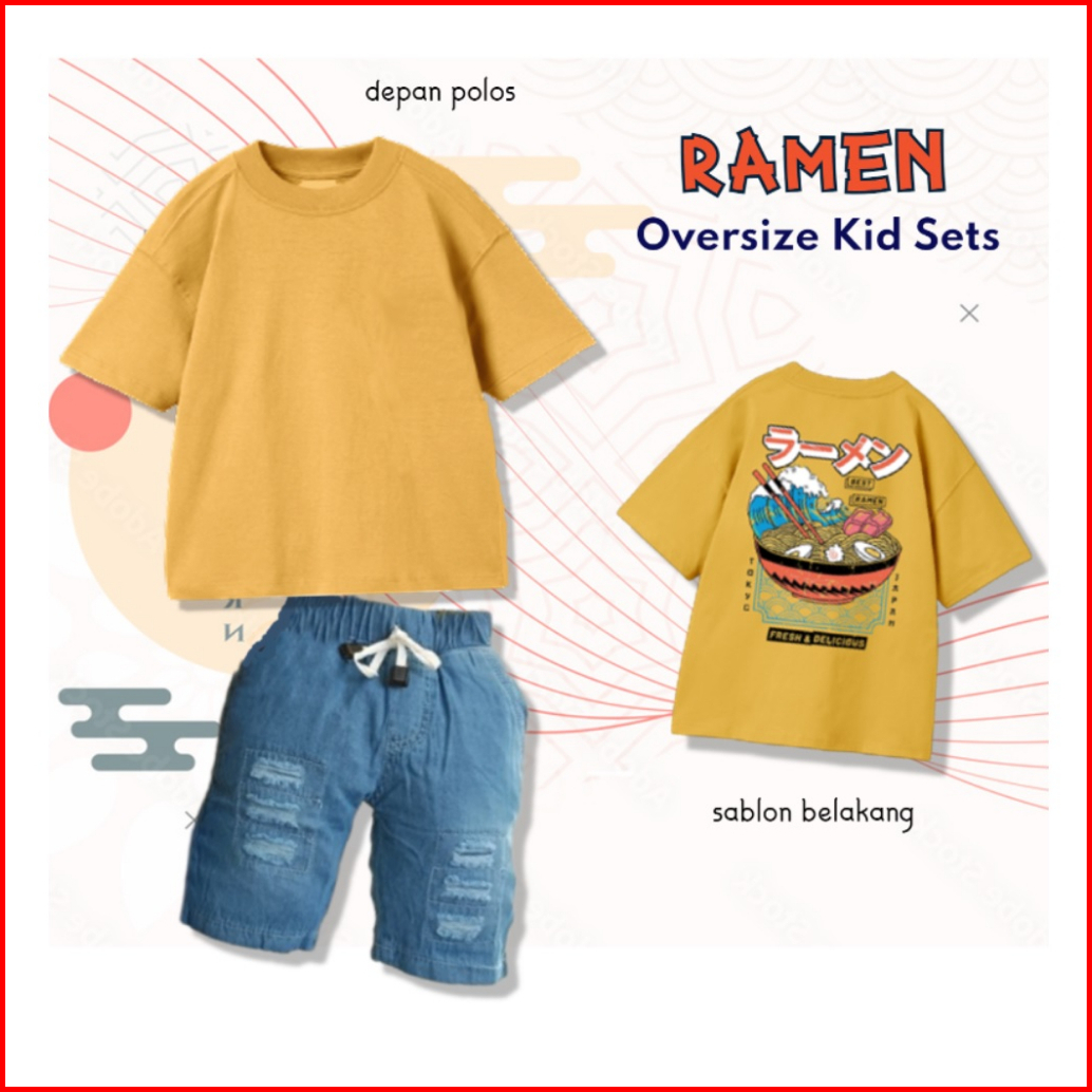Baju Anak Oversize Motif Ramen Baju Anak Laki-laki Perempuan Kaos Gambar Mie Ramen Usia 1 Tahun - 8 Tahun Baju Setelsn D