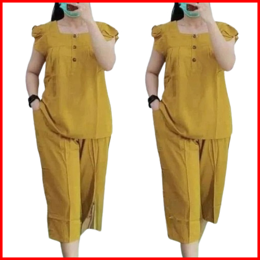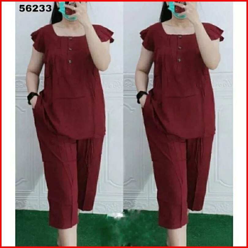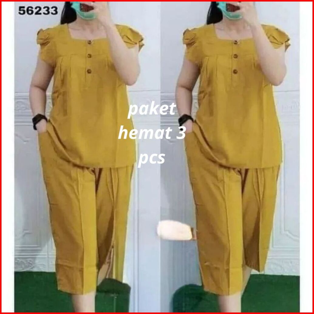 Setelan Wanita Rayon Polos Kekinian Celana Pendek Jumbo Baju Tudur Kancing 3 Setelan Bangkok Babydoll Crinkle Pajamas On