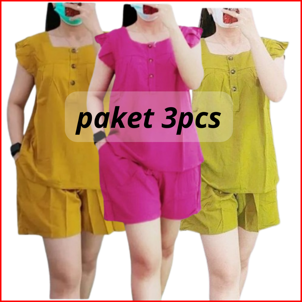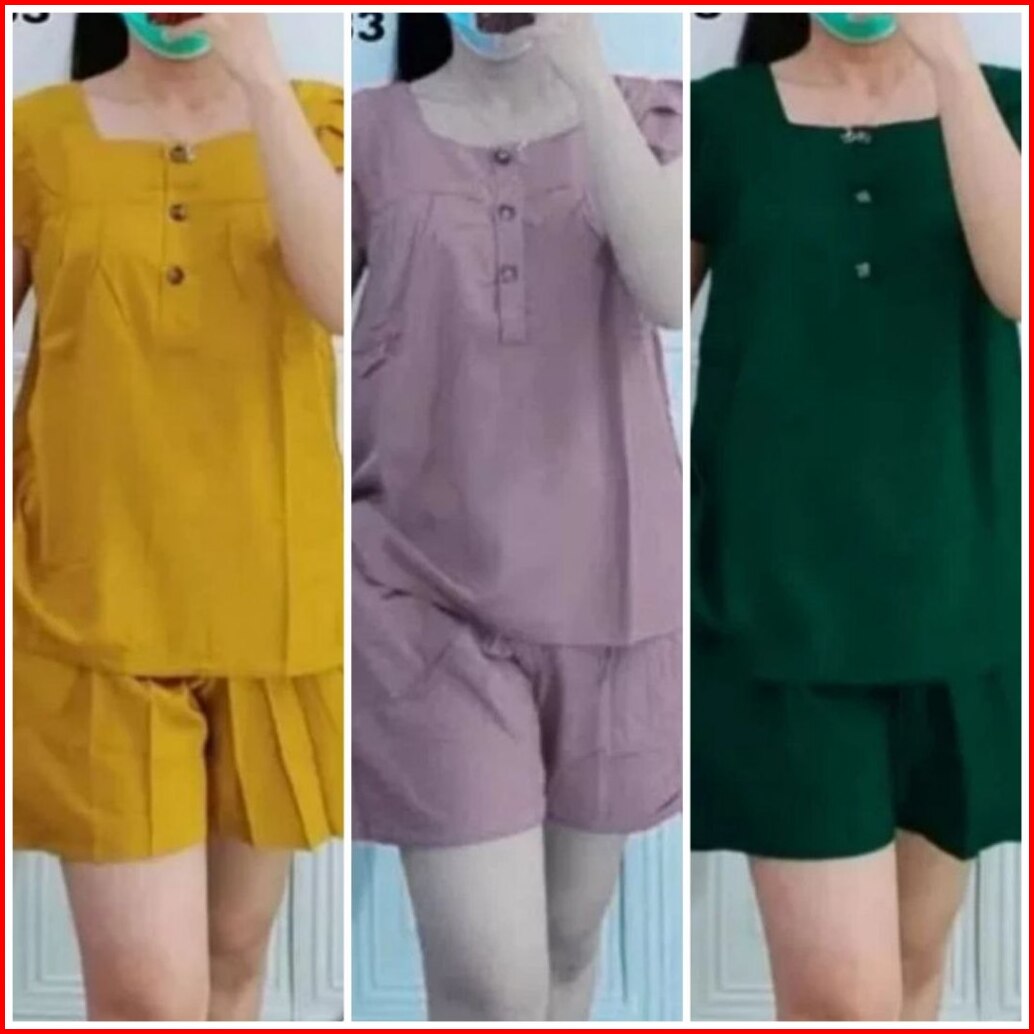 Daster Setelan Bahan Rayon Stelan Big Size Jumbo Wanita Baju Tidur Polos Wanita Lengan Pendek Baju Tidur Busui Kekinian