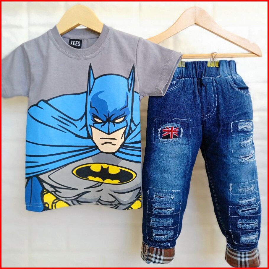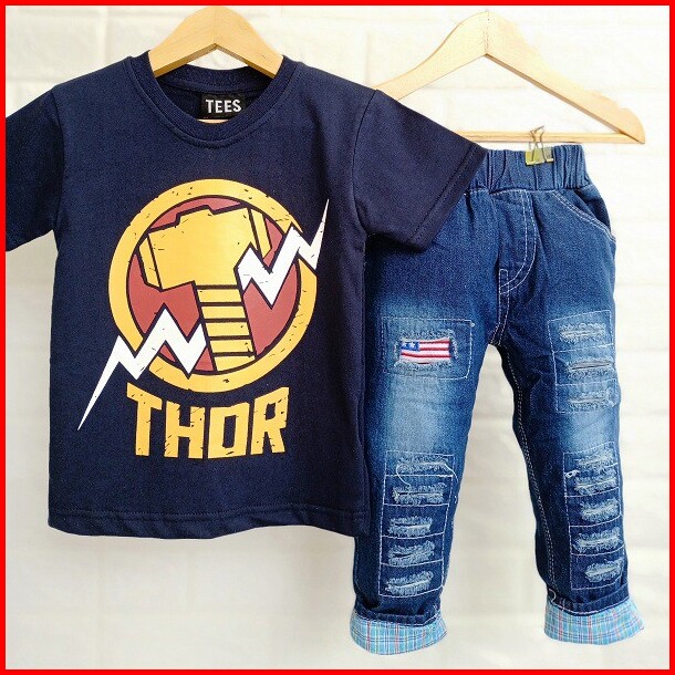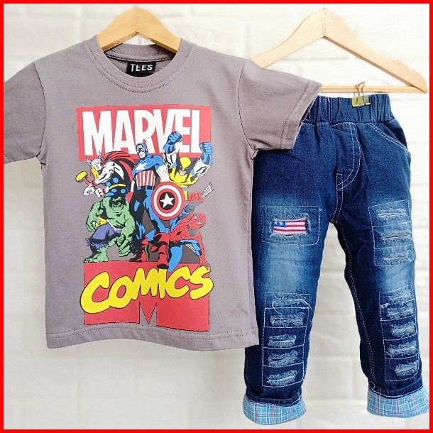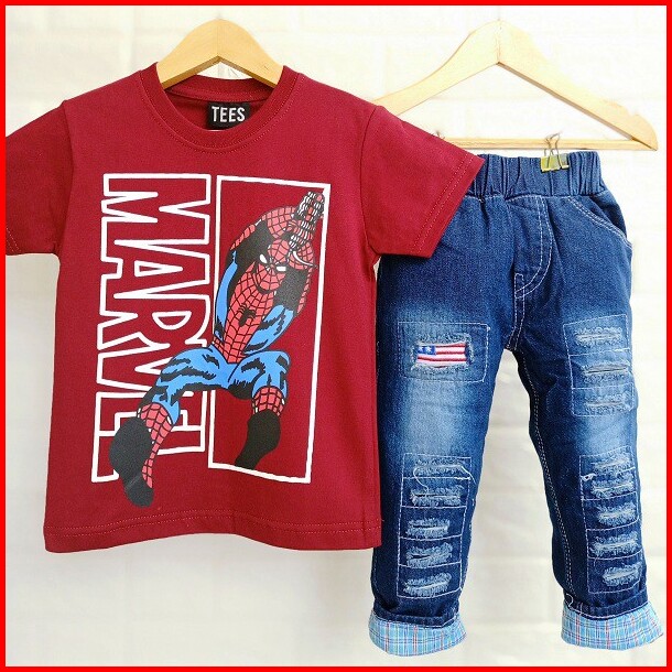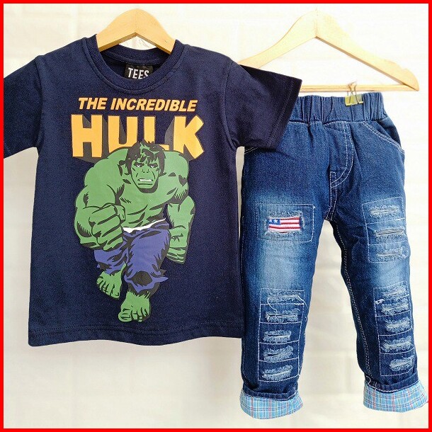 Baju Anak Cowok Superhero Celana Jeans Panjang Blstk 1-9 Tahun Spiderman Hulk Thor