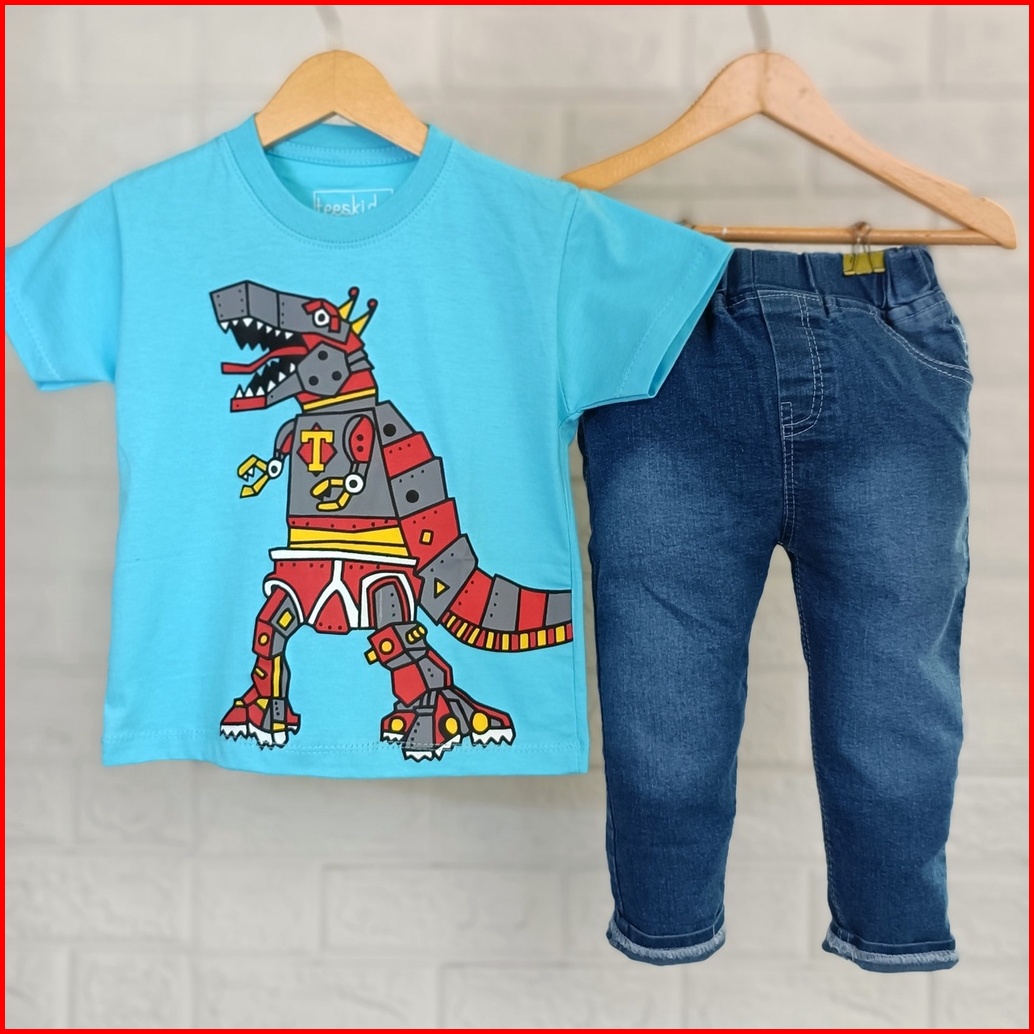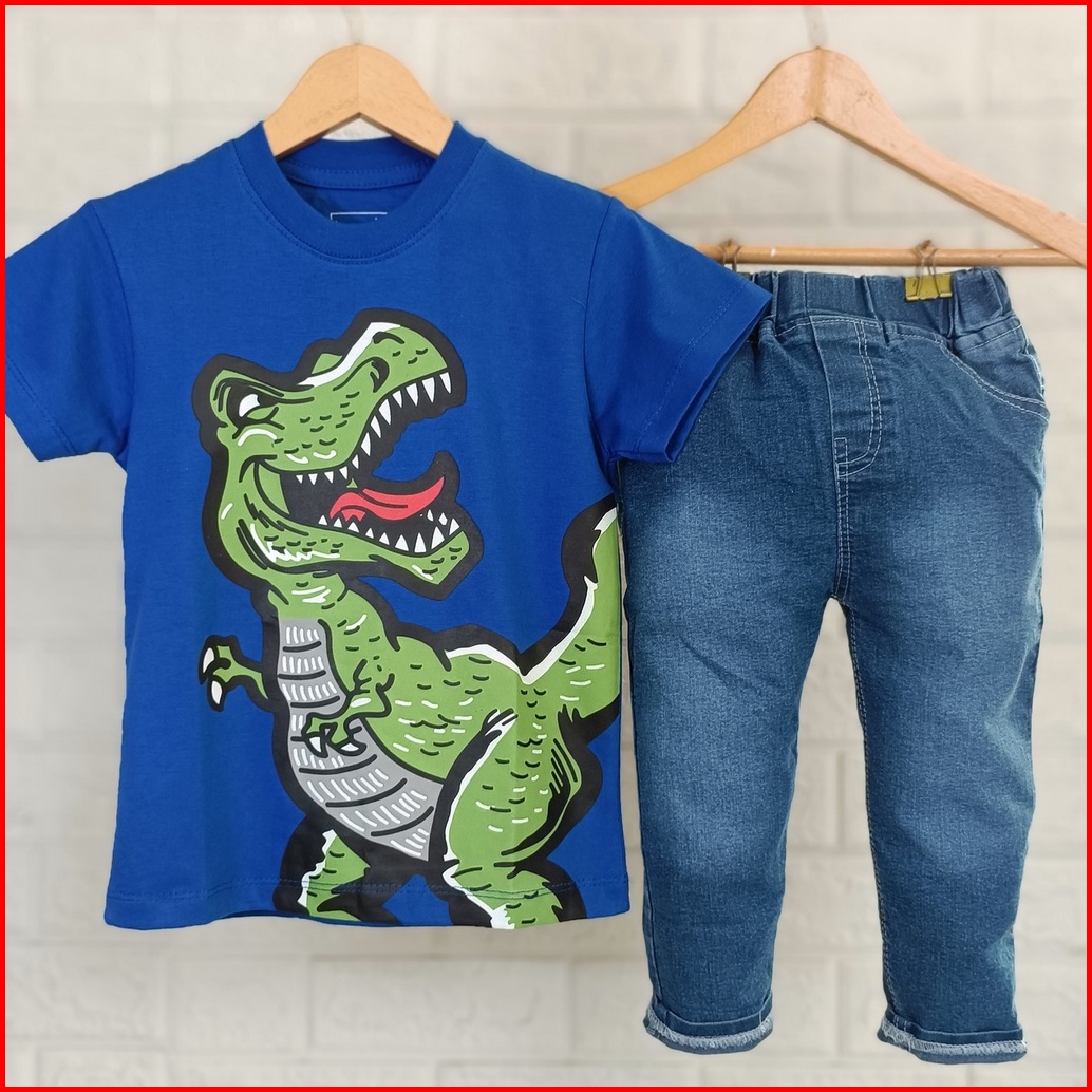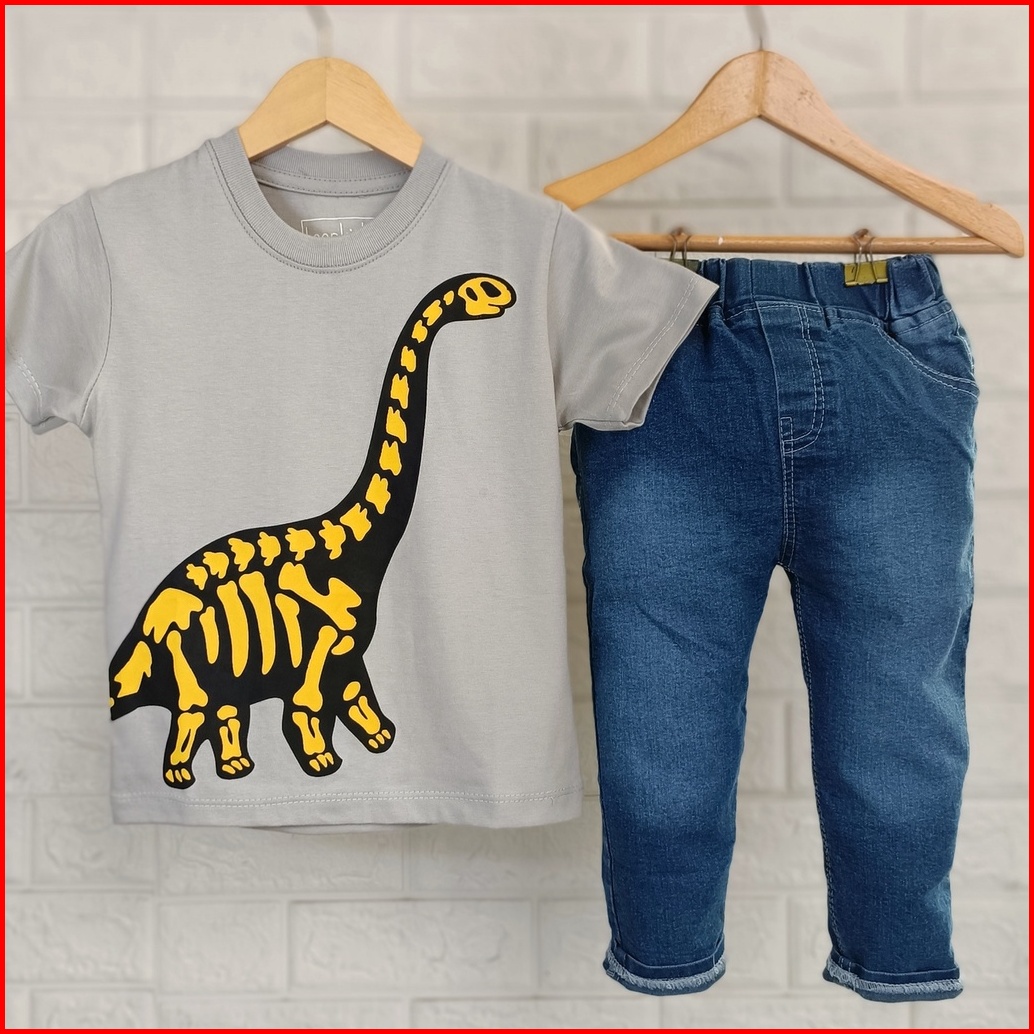 Setelan Anak Laki-laki Pakaian Anak Cowok Celana Panjang Jeans Anak Laki-laki Baju Anak Cowok 1 Tahun - 9 Tahun Dino Jea