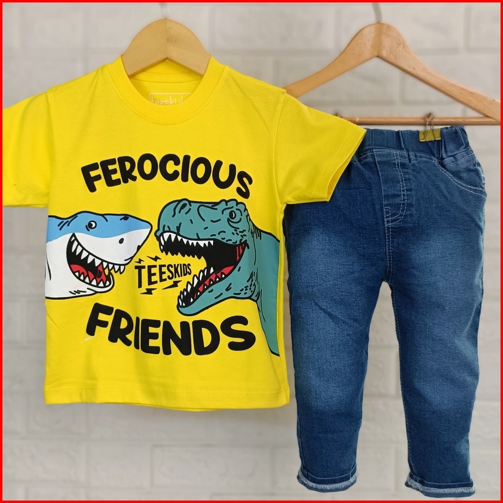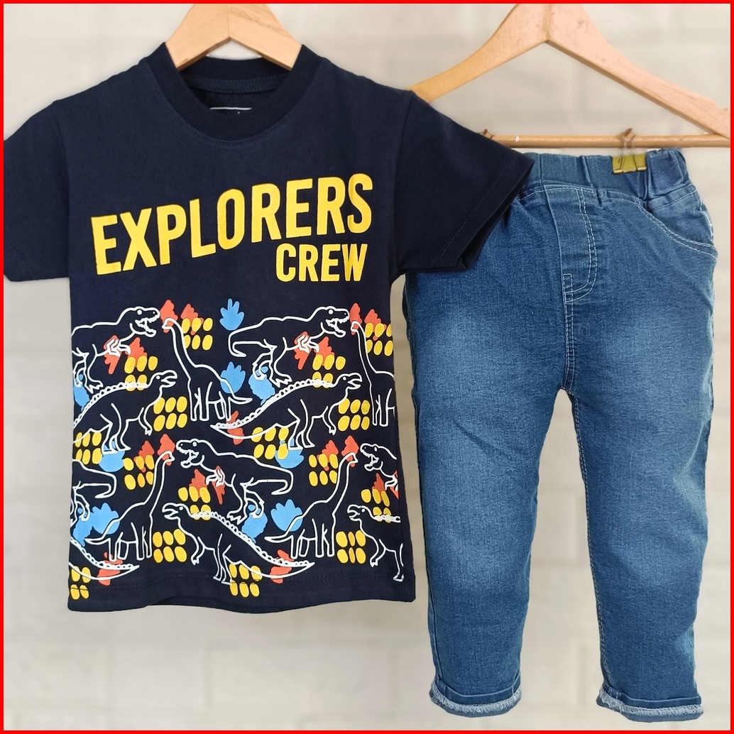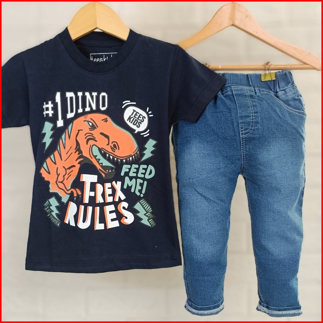 Setelan Anak Laki-laki Pakaian Anak Cowok Celana Panjang Jeans Anak Laki-laki Baju Anak Cowok 1 Tahun - 9 Tahun Dino Jea