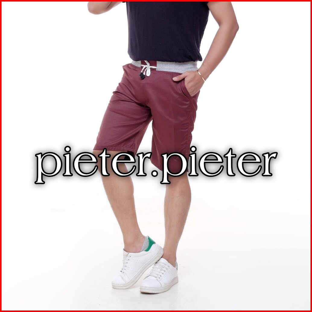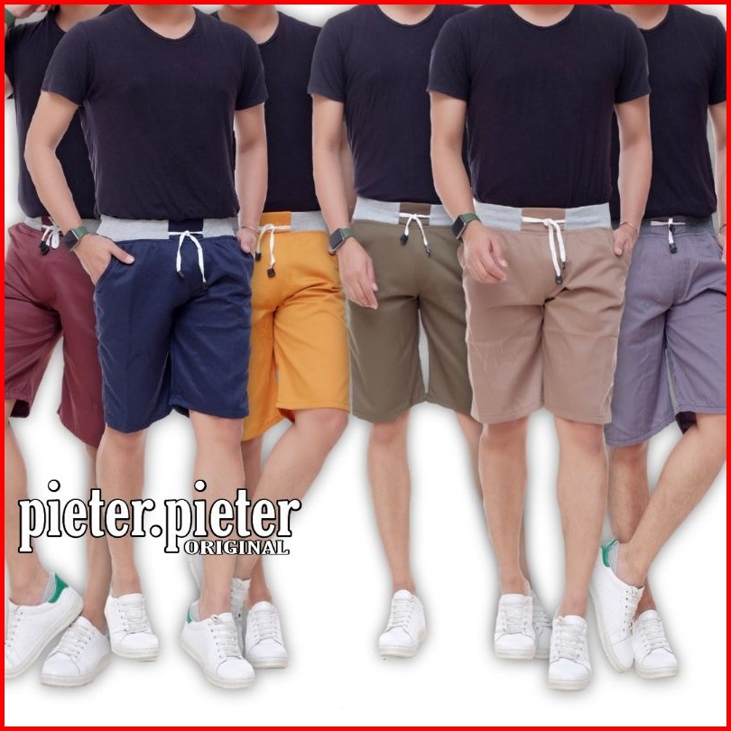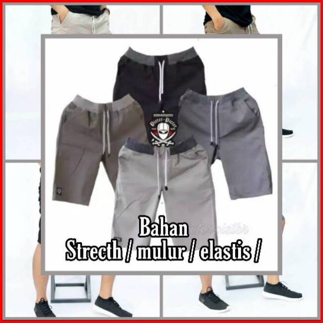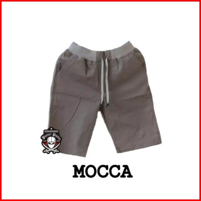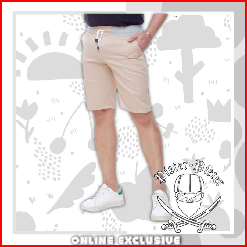Big Size Celana Chino Pendek Pria Mick Pinggang Karet Rip Katun Twill Krem Coklat Surfing Santai
