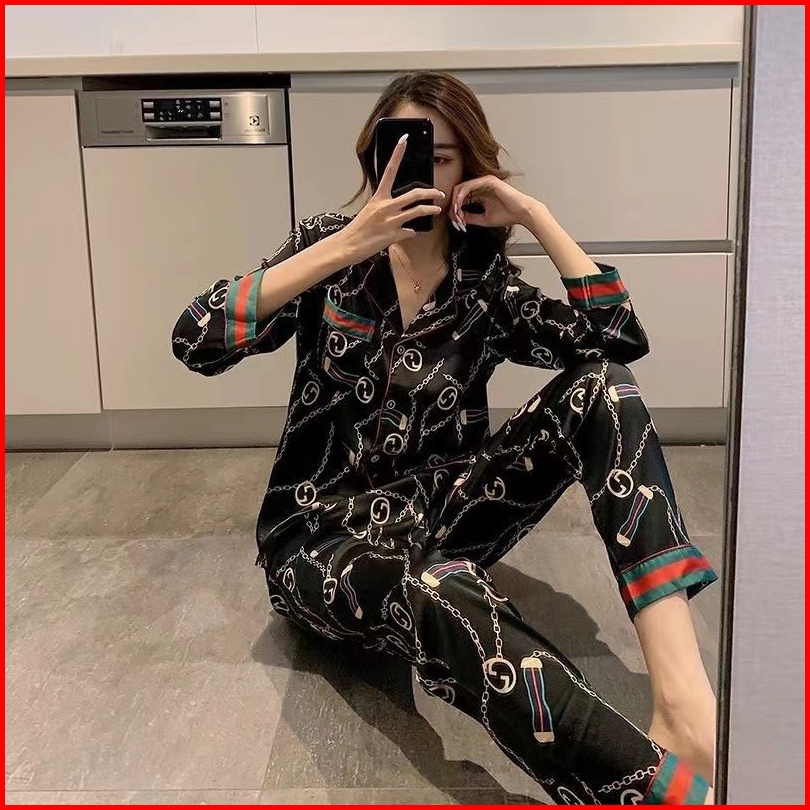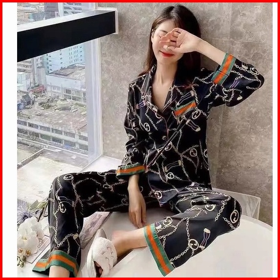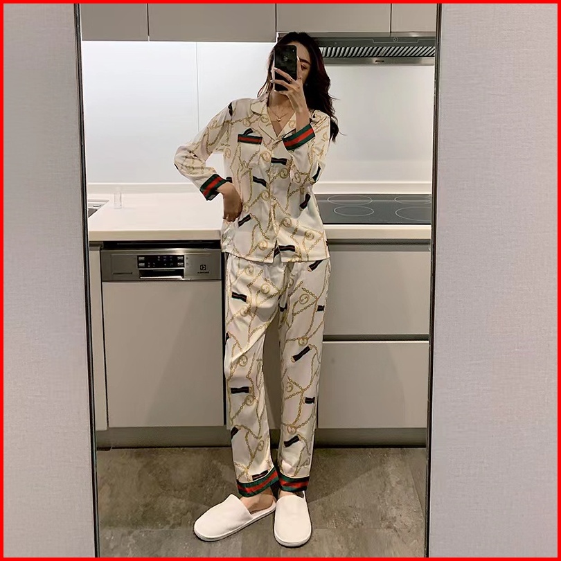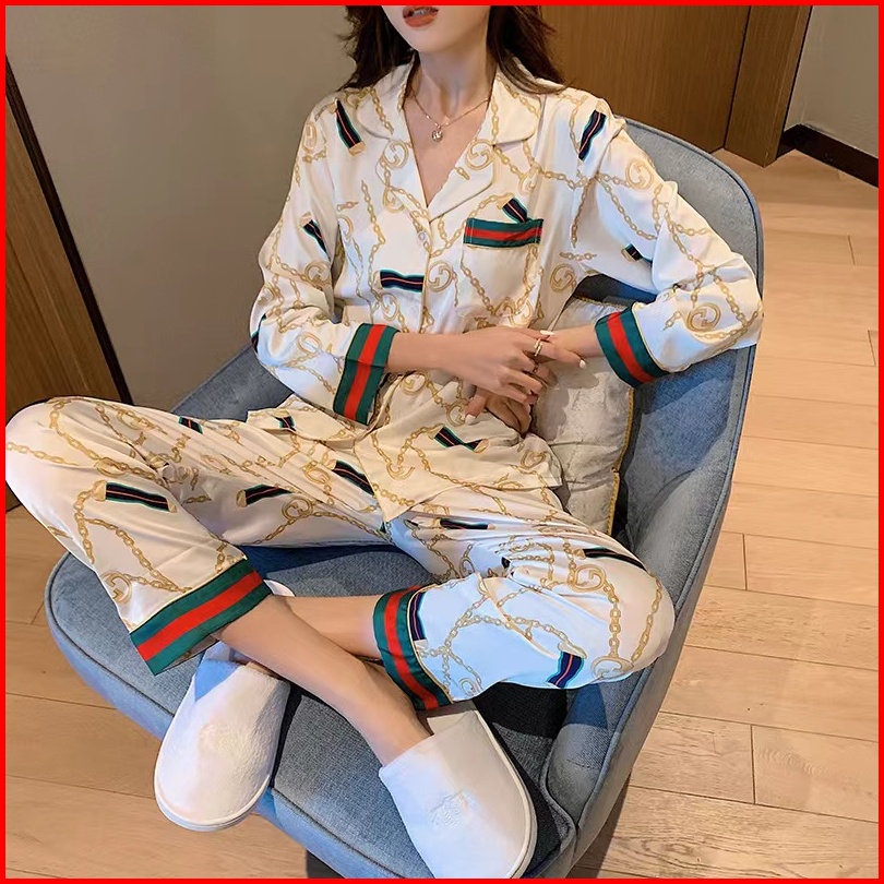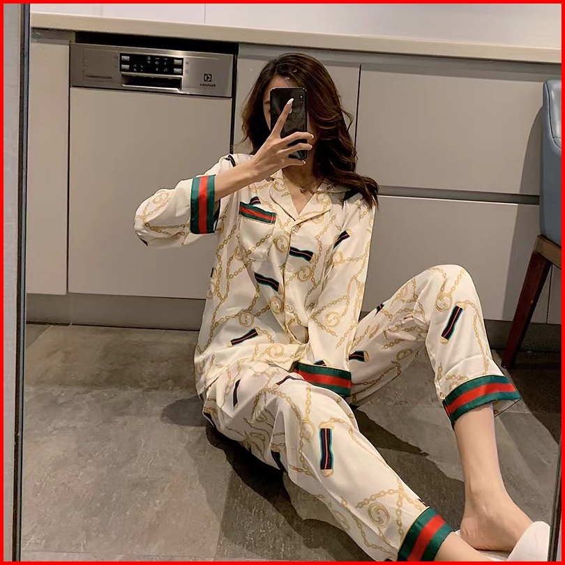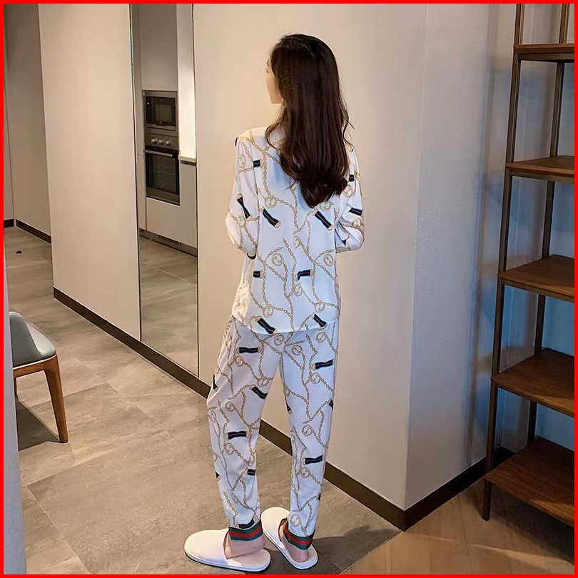 Baru Musim Gugur Es Sutra Piyama Ukuran Besar Lengan Panjang Longgar Tipis Homewear Set