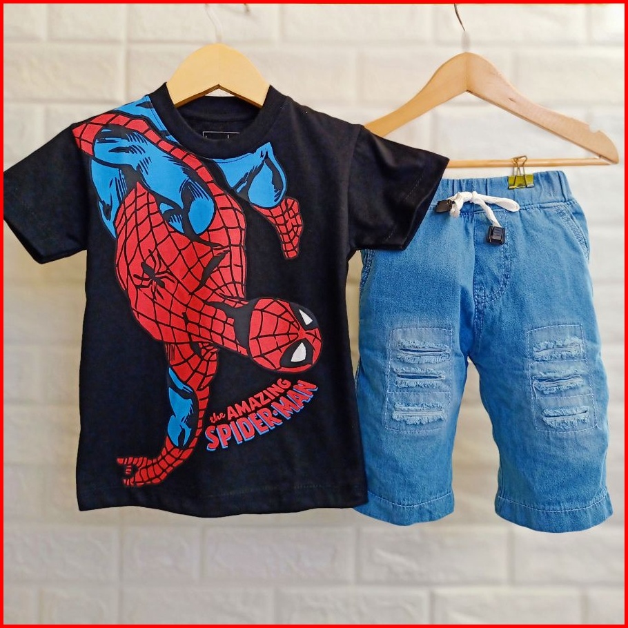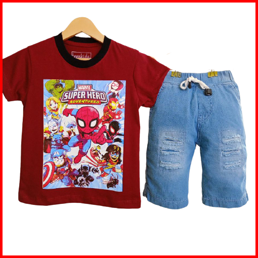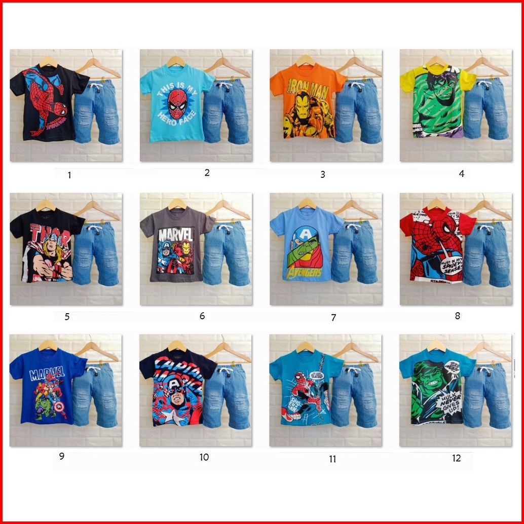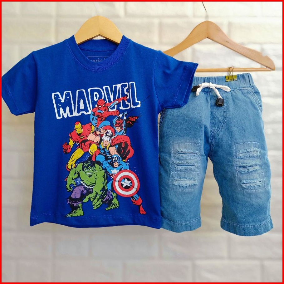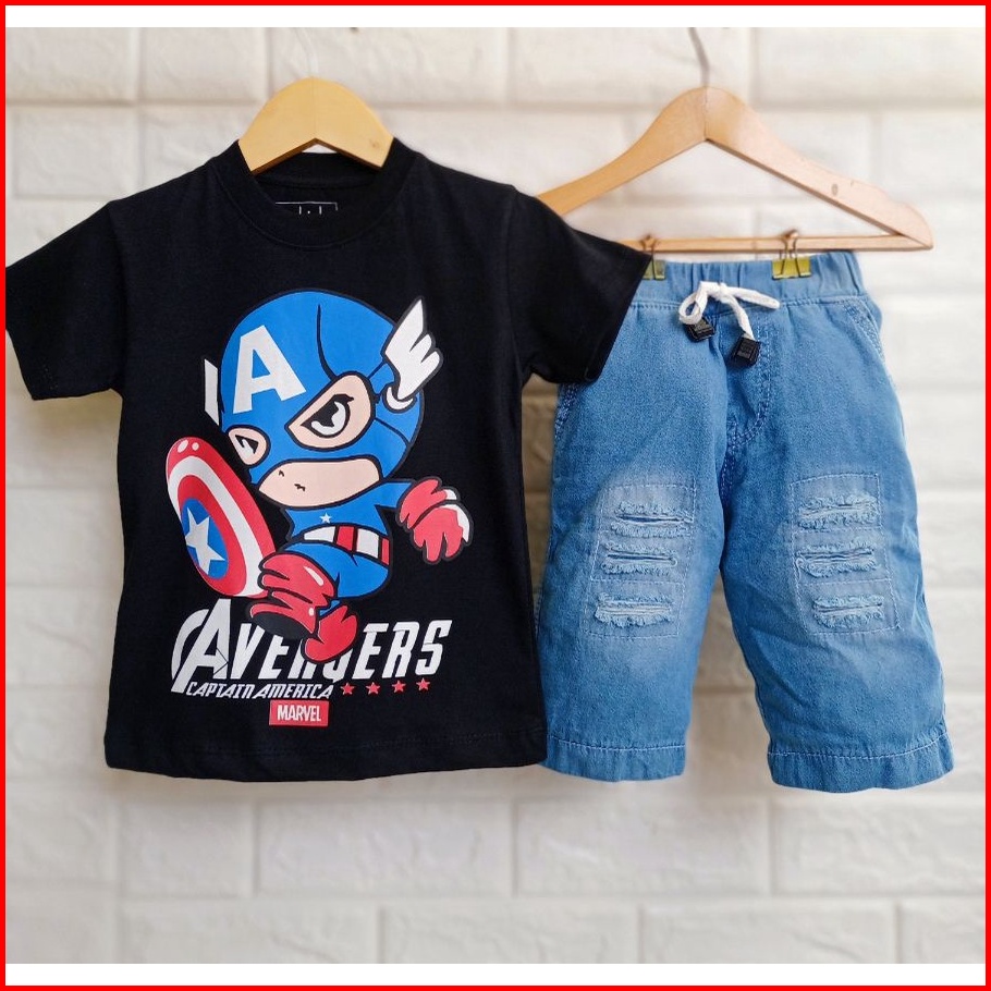 Setelan Baju Anak Laki Comics Celana Pendek Denim 1-9 Tahun Baju Anak Cowo Avenger