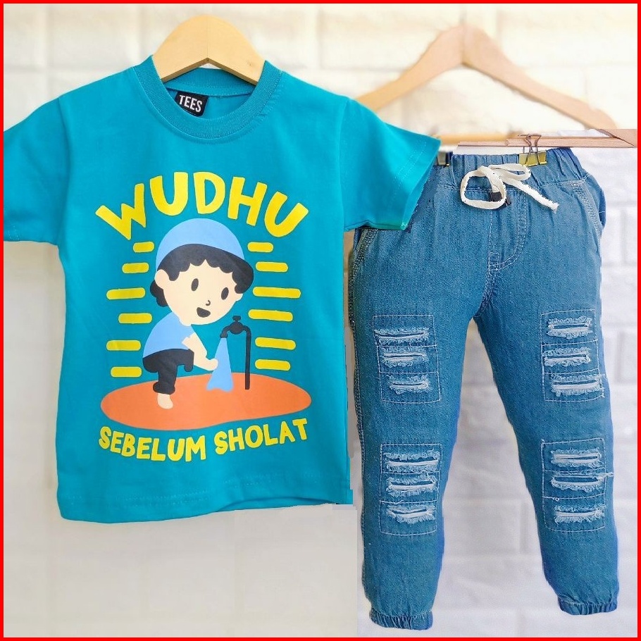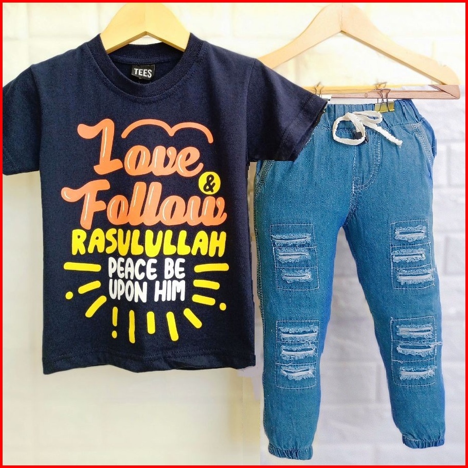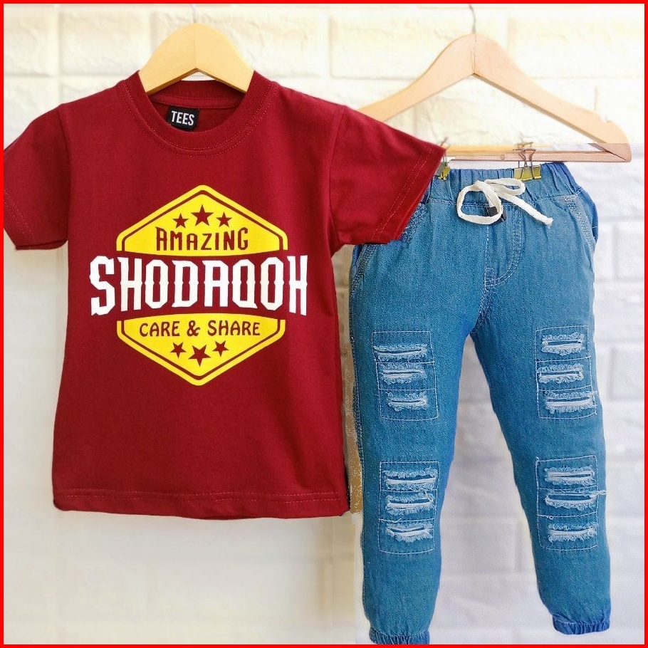 Setelan Anak Laki Laki Muslim Celana Panjang Joger Usia 1 -8 Tahun Baju Anak Muslim Maron Shodaqoh