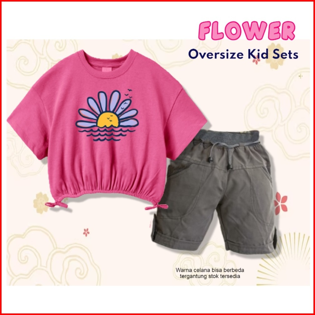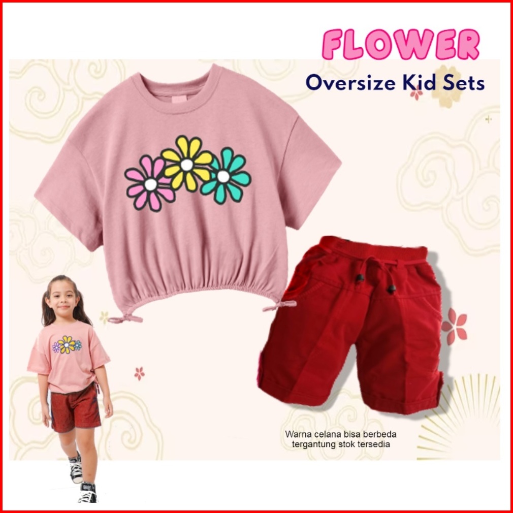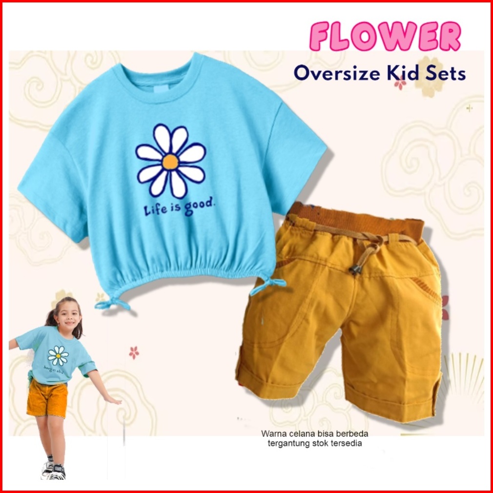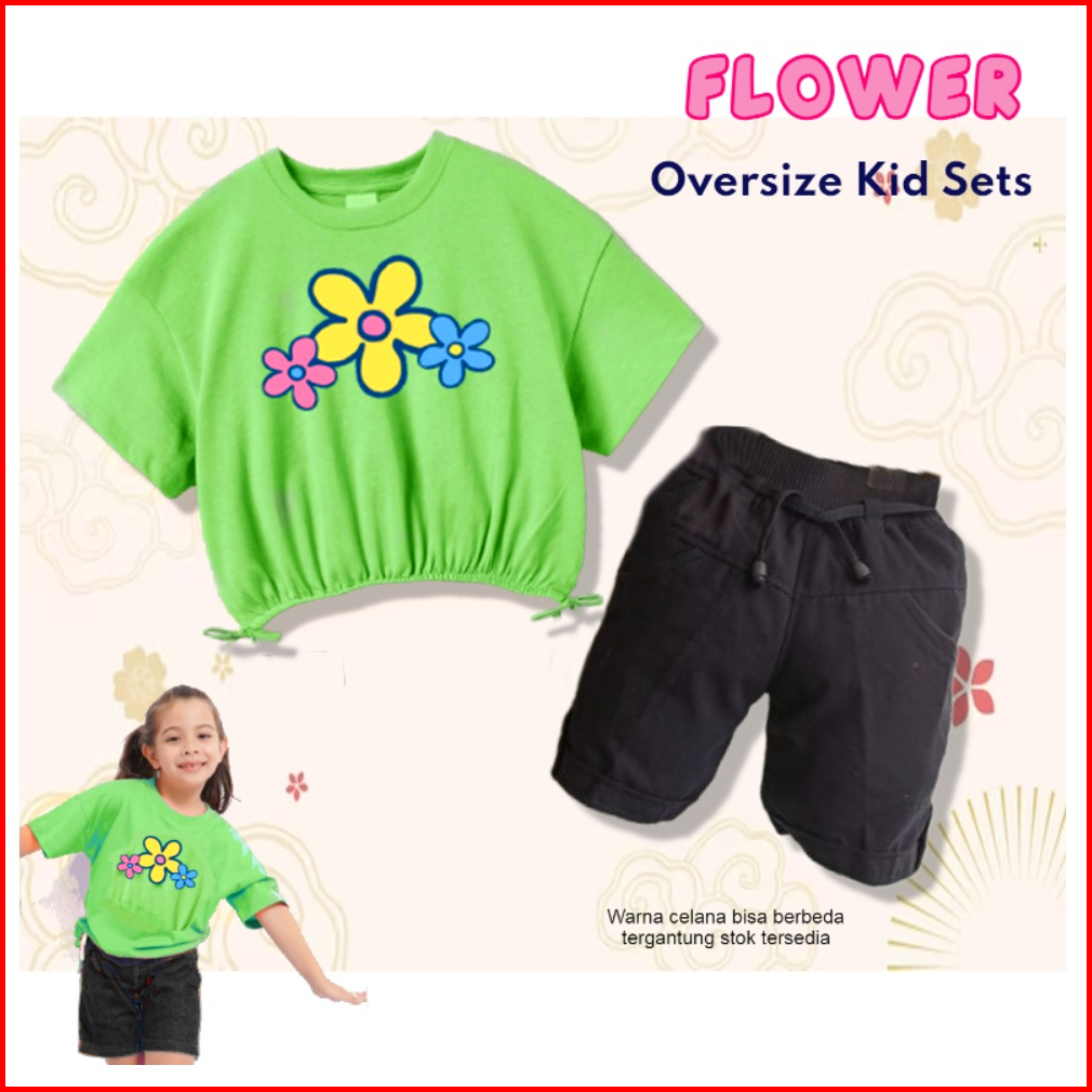 Pakaian Anak Cewek Setelan Anak Pempuan Crop Top Tali Serut Kiri Dan Kanan Kaos Oversize Flower Celana Pendek Lc Umur 1-