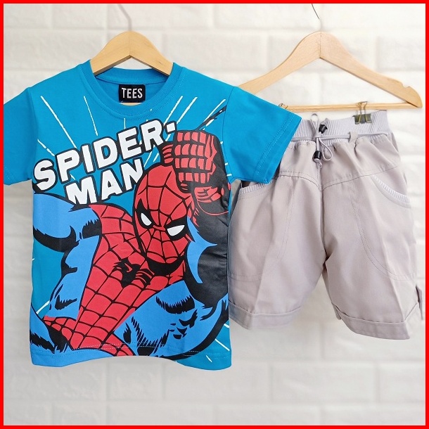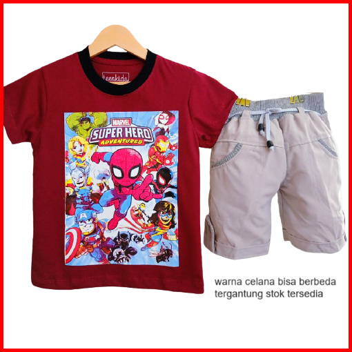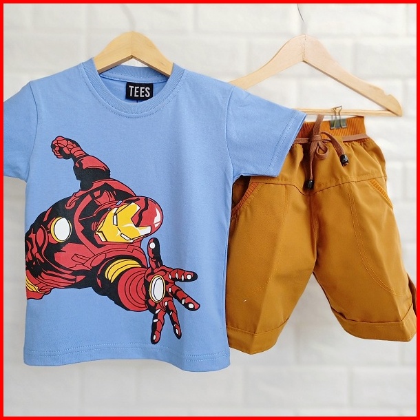 Setelan Anak Laki Laki Superhero Celana Pendek Lc Anak Cowok Usia 1-9 Tahun Baju Superhero Keren