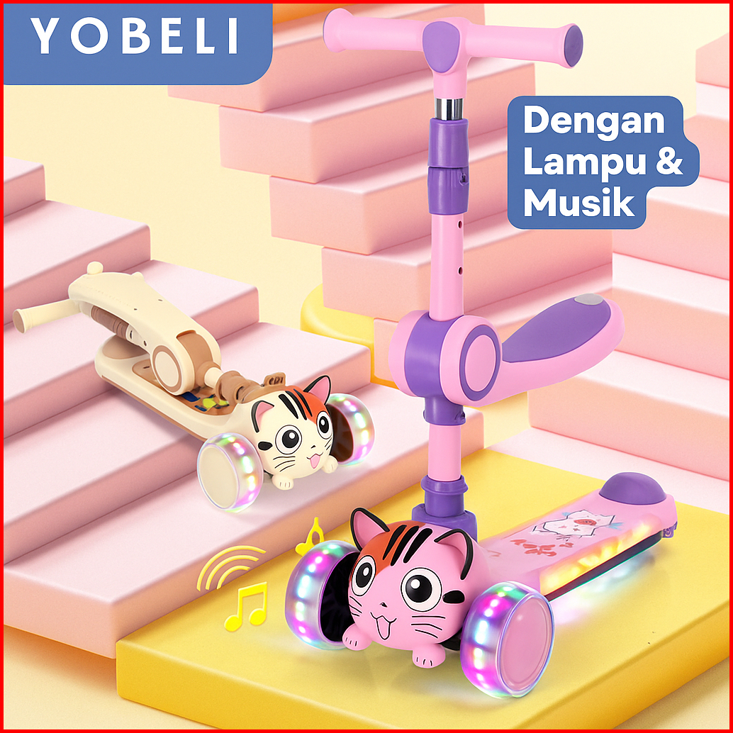 Scooter Anak 3 Roda 3 In 1 Skuter Otoped Anak Dengan Lampu Dan Musik Outdoor Indoor Bisa Lipat