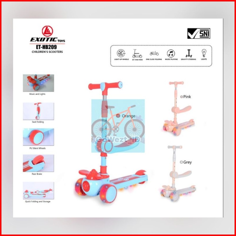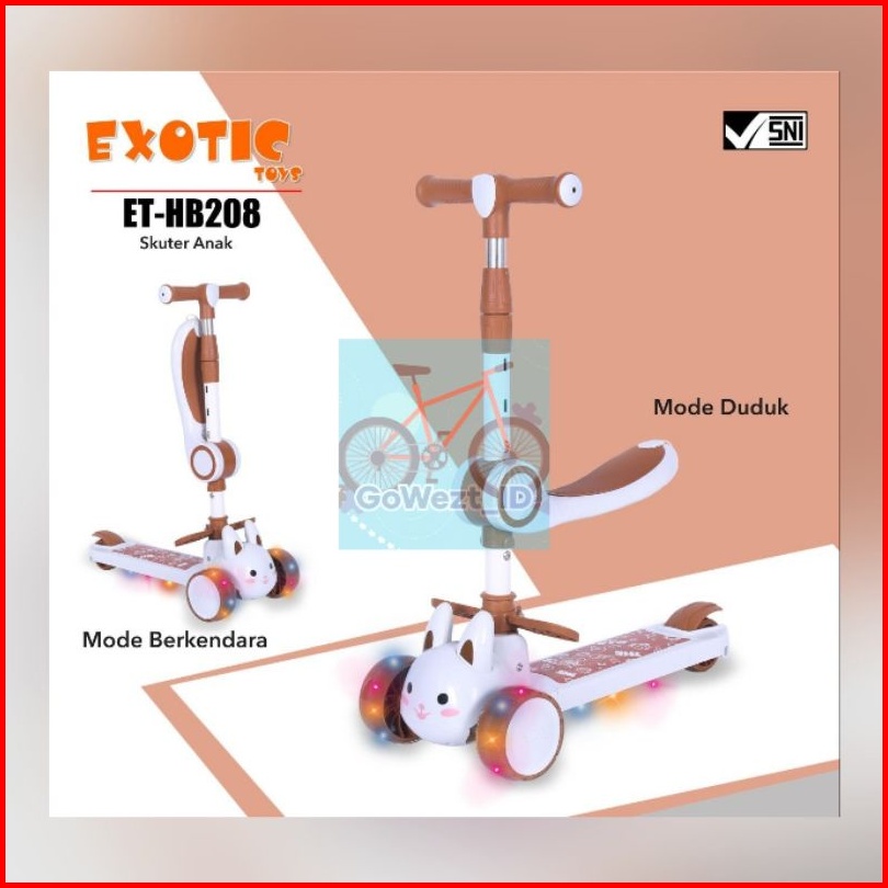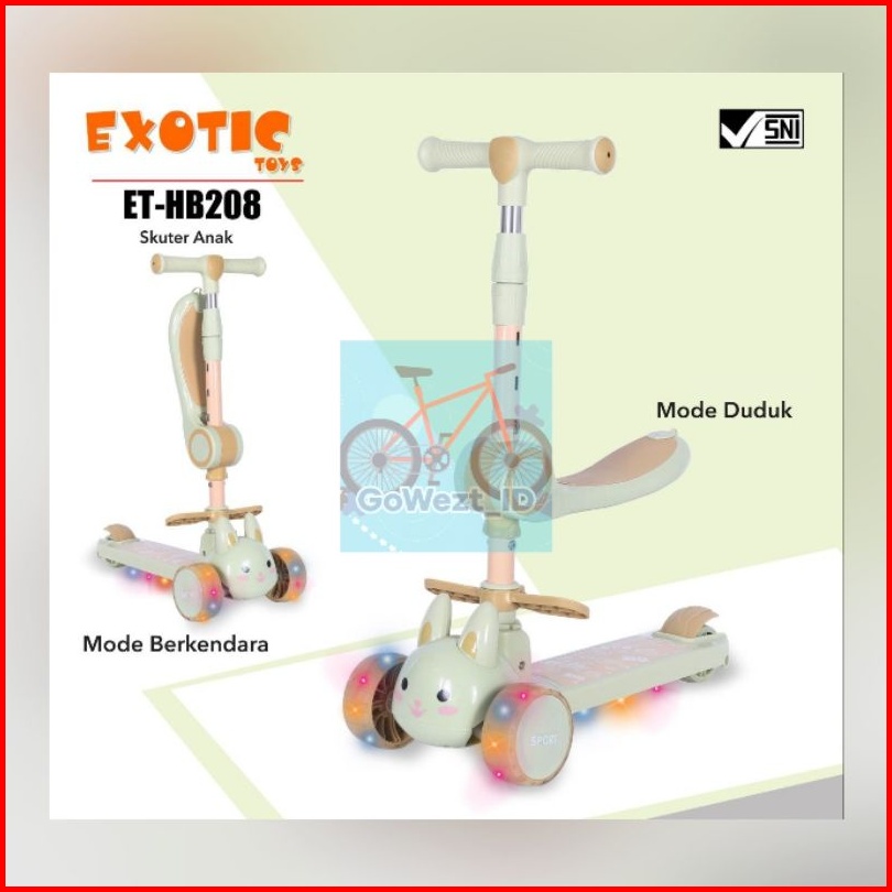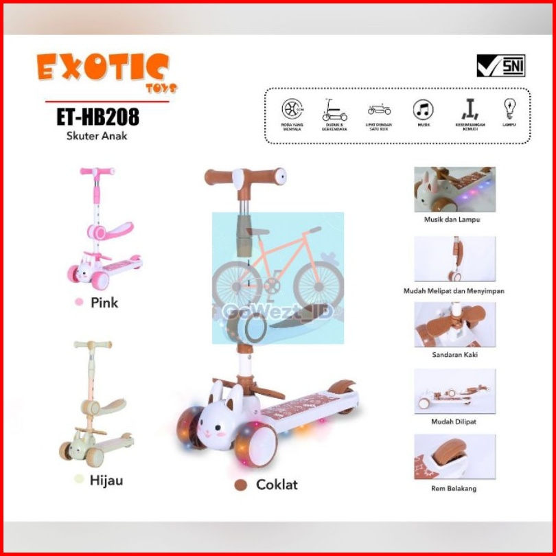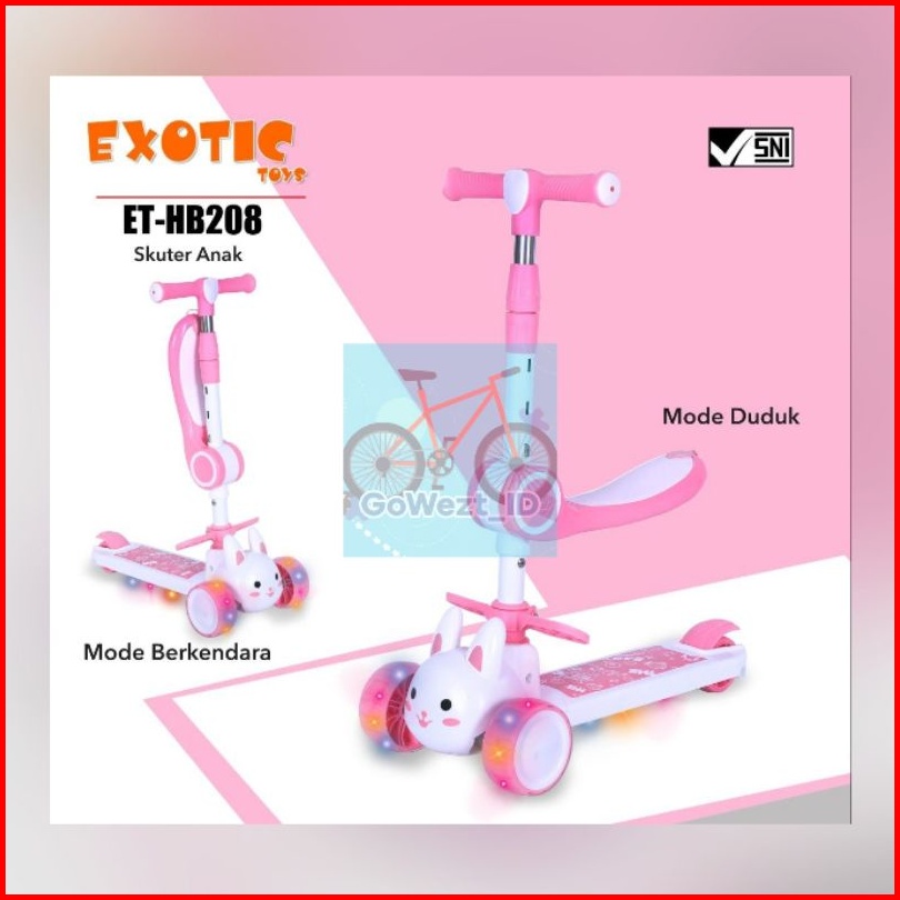 Scooter Skuter Otoped Anak Exotic Hb 208 209 210 Bangku Duduk Lipat Lampu Musik Cartoon Rabbit High Quality