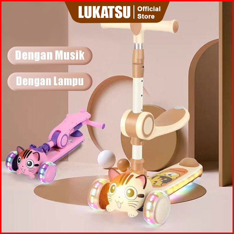 Lukatsu Scooter Anak 3 Roda Bisa Dilipat Dengan Lampu Dan Musik Skuter Harimau Skuter Anak Laki-laki Dan Perempuan