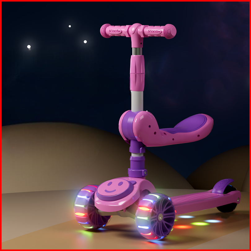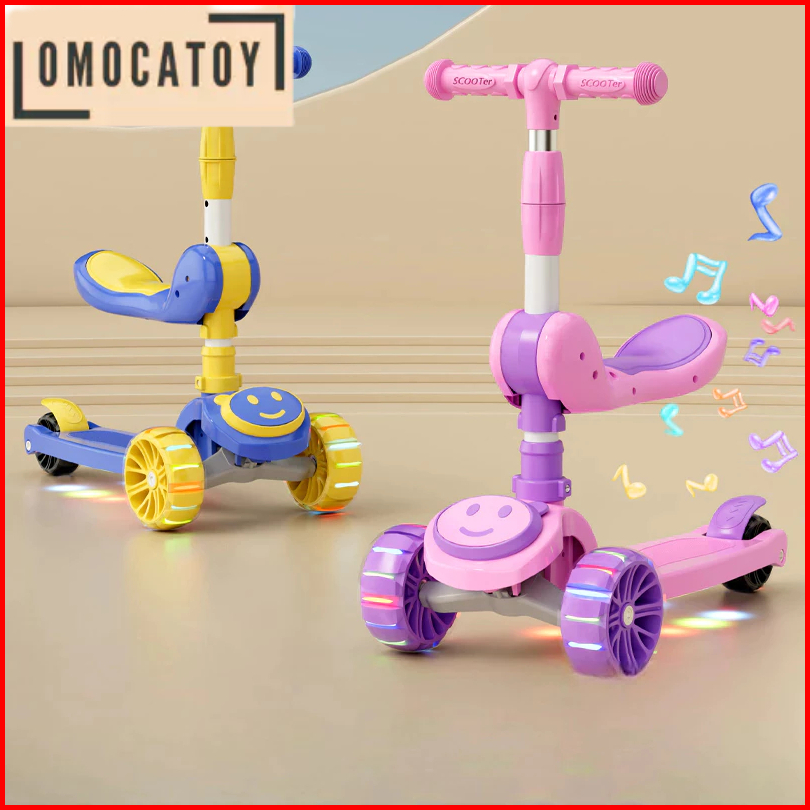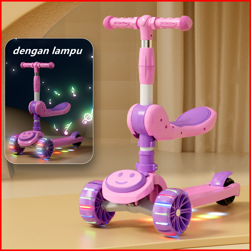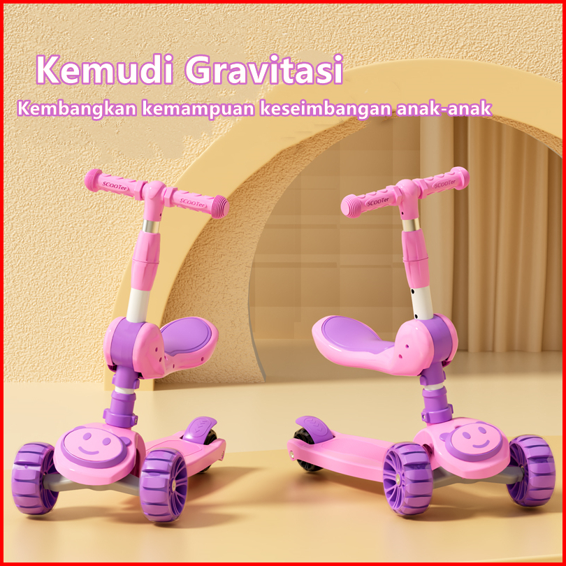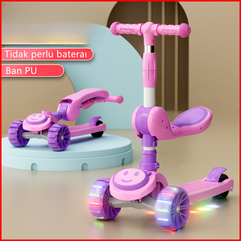 Skuter Lucu Untuk Anak-anak Skuter Roda 3 Untuk Anak-anak Skuter Anak Roda 3 Skuter 2 In 1 Lipat Cocok Untuk Usia 2-12 T