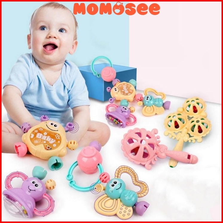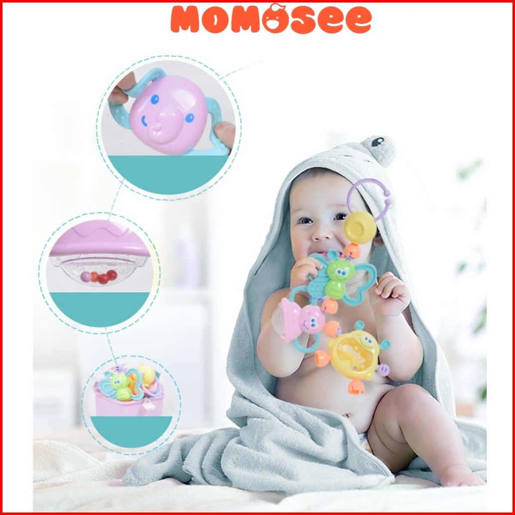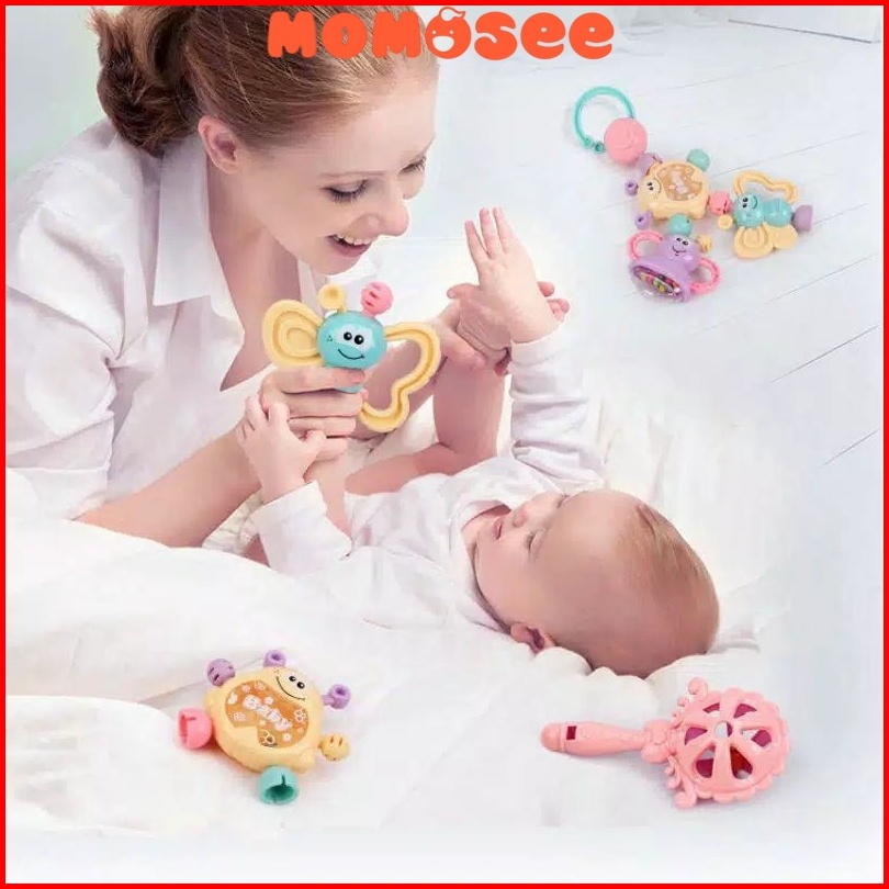 Momosee Baby Teether Rattle Teething Kit Mainan Gigitan Bayi Silikon Pp Bayi Mainan Bayi Wj03