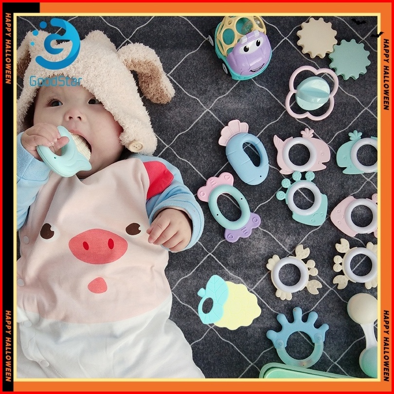 Goodstarmainan Gigitan Giring Bayi 5-11pcs - Set Teether Aman Bisa Disinfeksi Rattle Bunyi Lucu Desain Warna-warni Bisa