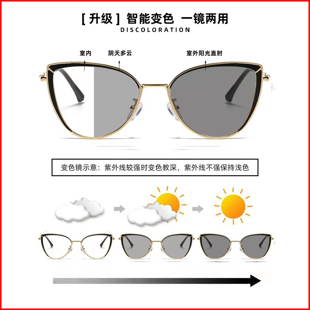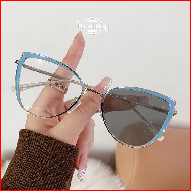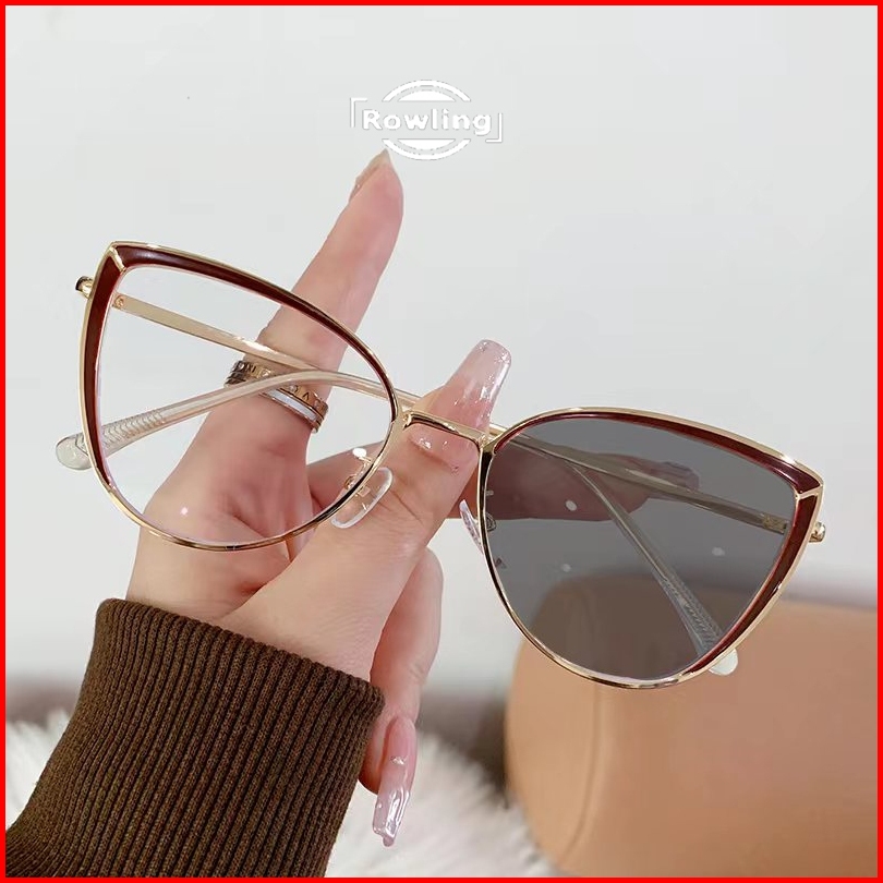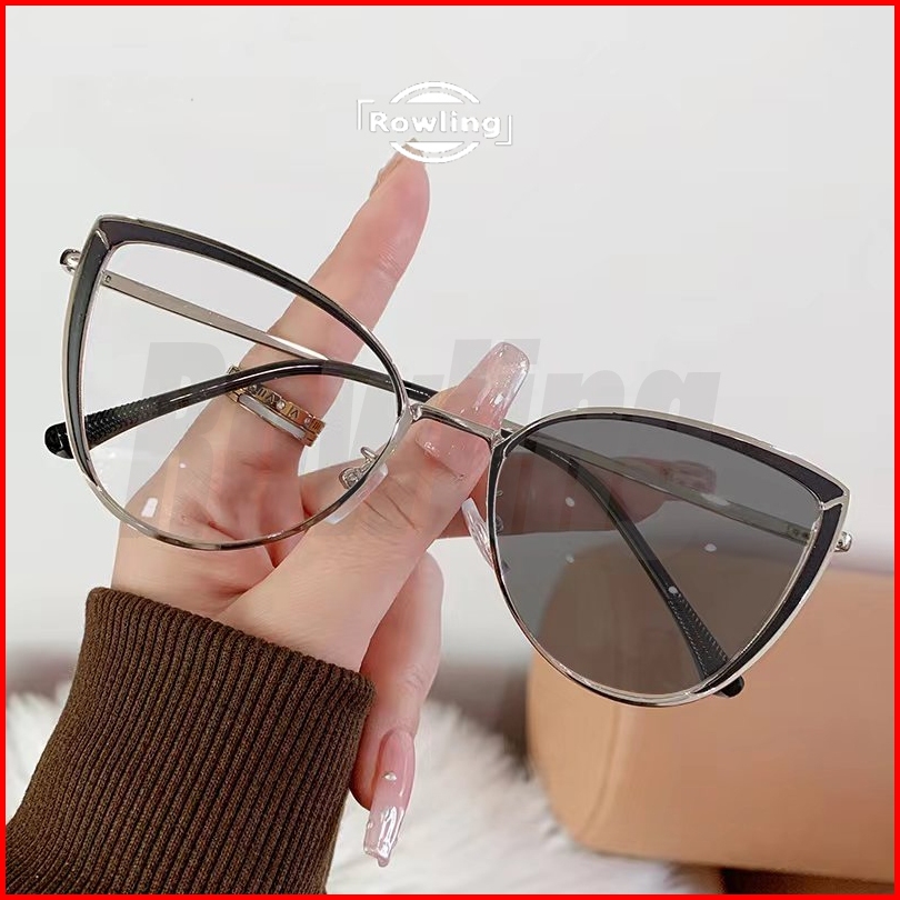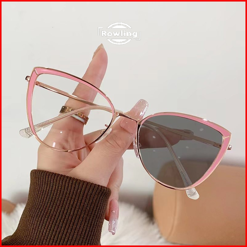 Rowling Pc-488 Kacamata Lensa Photocromic Anti Radiasi Wanita Kacamata Bingkai Titanium Cat Eye Anti Uv 2 In 1 Fotocromi